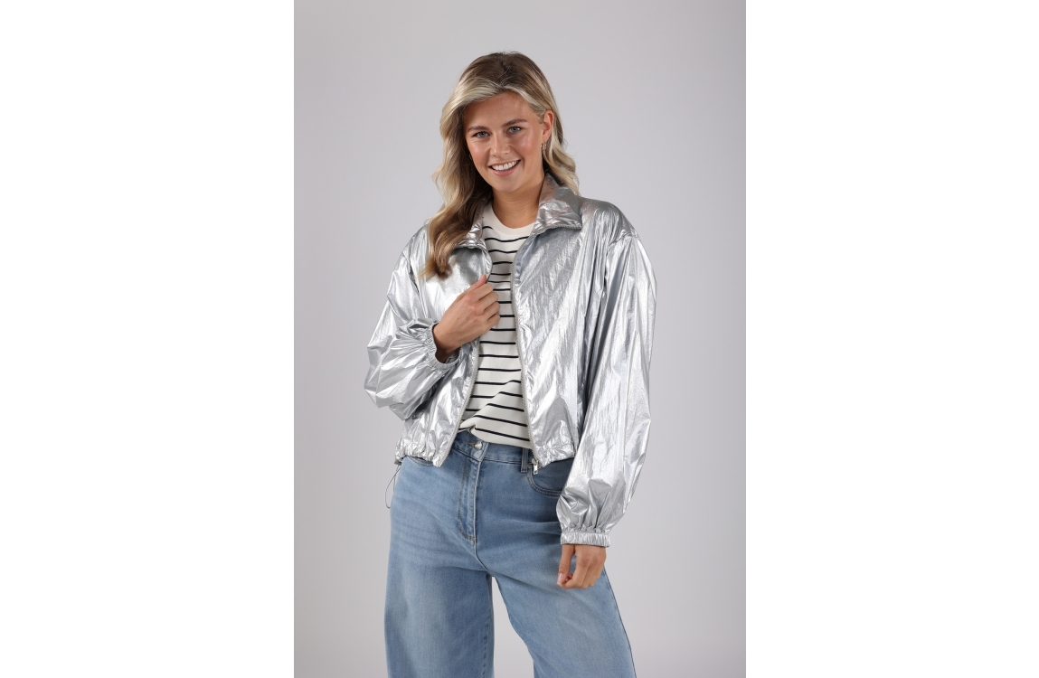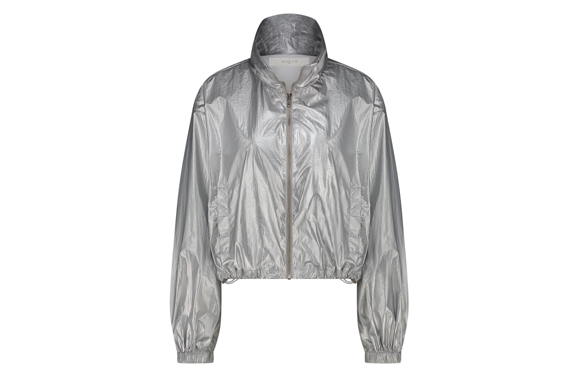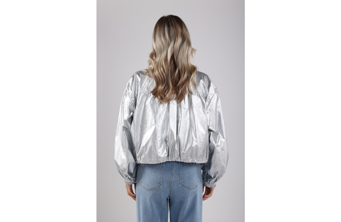NUKUS jasje Deveny NKS13025. Dit rechtvallend model heeft een hoge kraag en lange mouwen. Deze zilverkleurige jas van NUKUS sluit aan de voorzijde door middel van een rits en beschikt over twee steekzakken. Het model is voorzien van elastische mouwboorden en beschikt over een trekkoord in de onderzijde.