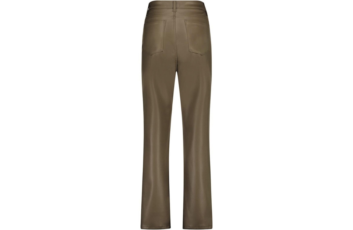 Nukus broek Jane. Dit flared fit sluit door middel van een rits en een knoop afgewerkt met ceintuurlussen. Deze bruine 5-pocket model is uitgevoerd in een PU kwaliteit.