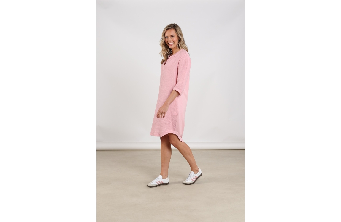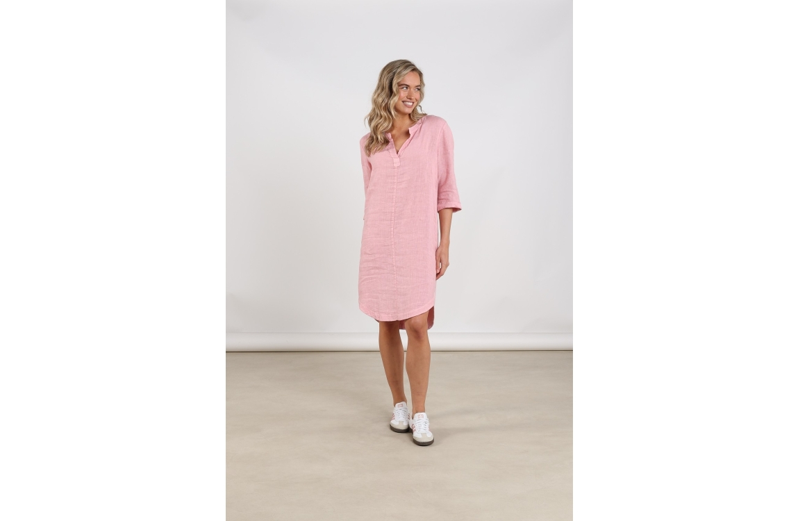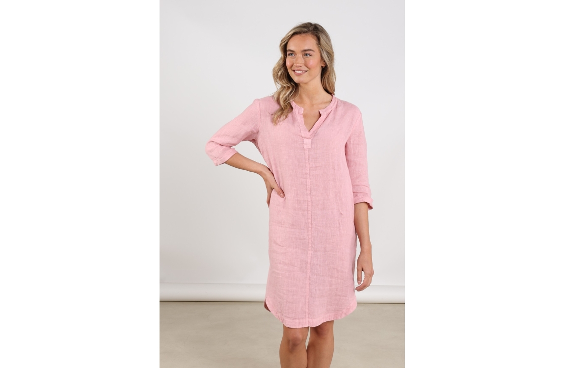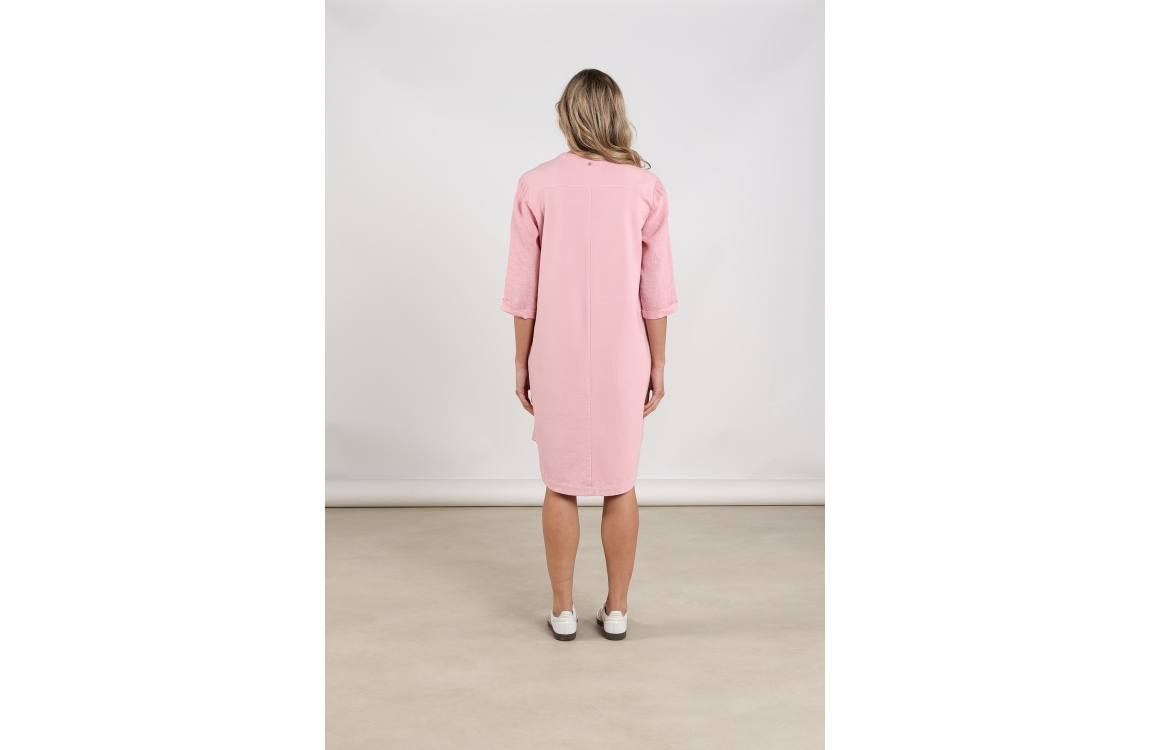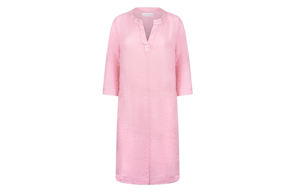 NUKUS Kate Dress Mix 30 blush. Dit rechtvallende model is voorzien van een v-hals en heeft driekwart mouwen. Deze roze jurk van Nukus is luchtig en ademend.
