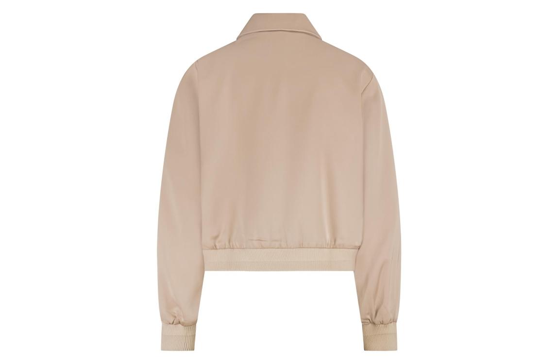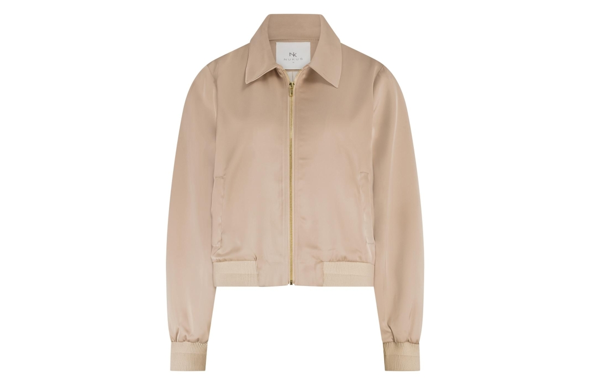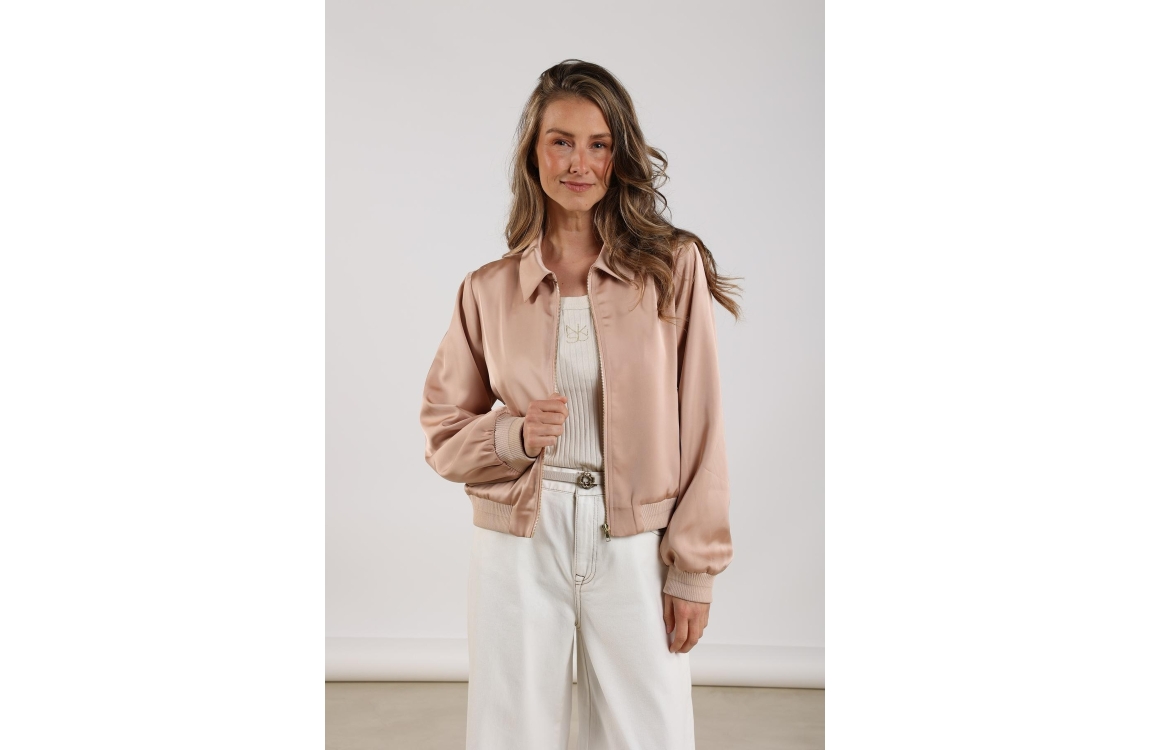 NUKUS Noa Bomber 266 dusty pink. Dit bomber model is voorzien van een kraag en heeft lange mouwen. Deze roze bomber van Nukus sluit door middel van een rits en is afgewerkt met ribboorden. Dit model is uitgevoerd in een licht glanzend materiaal met een luxe satijnlook.
