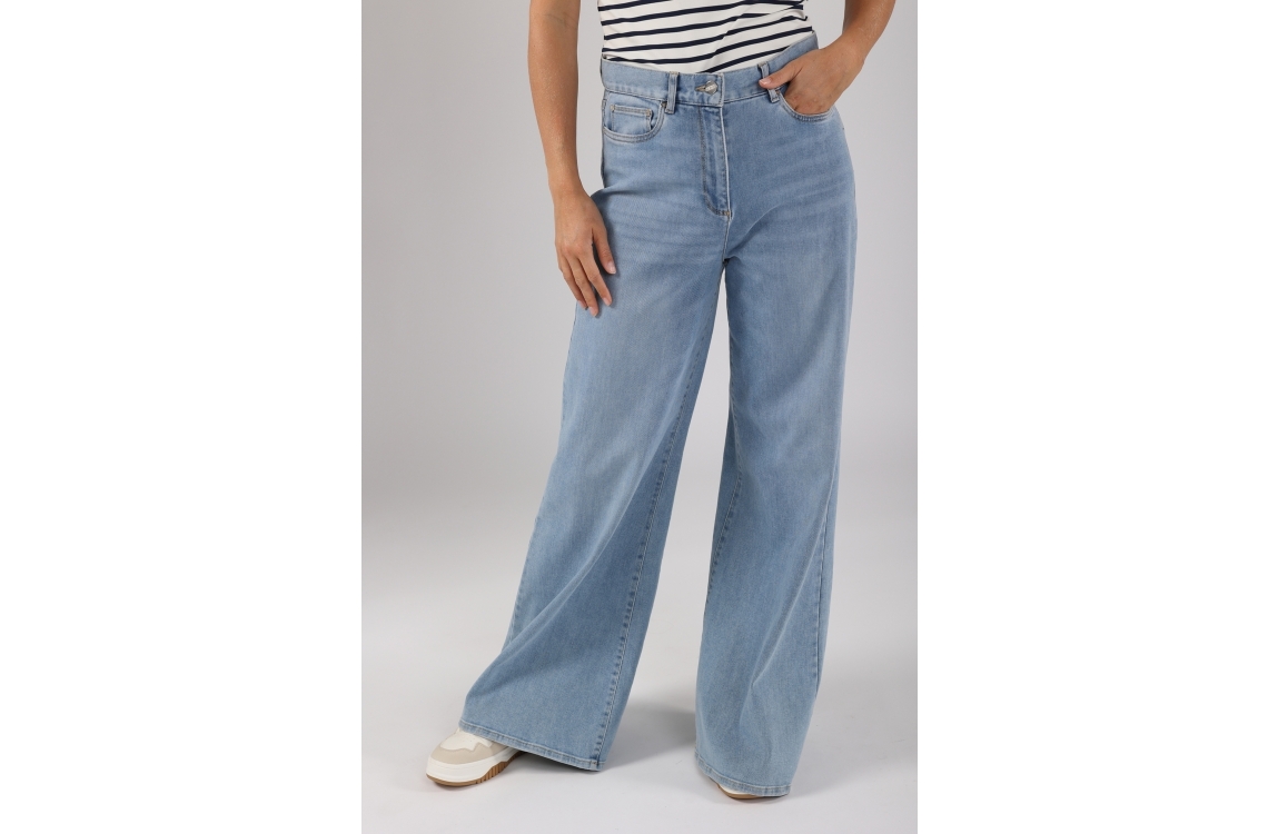 Nukus jeans Ruby NKS09023. Dit wide leg model sluit door middel van een knoop en rits afgewerkt met ceintuurlussen. Deze jeans is uitgevoerd in een 5-pocket model.
