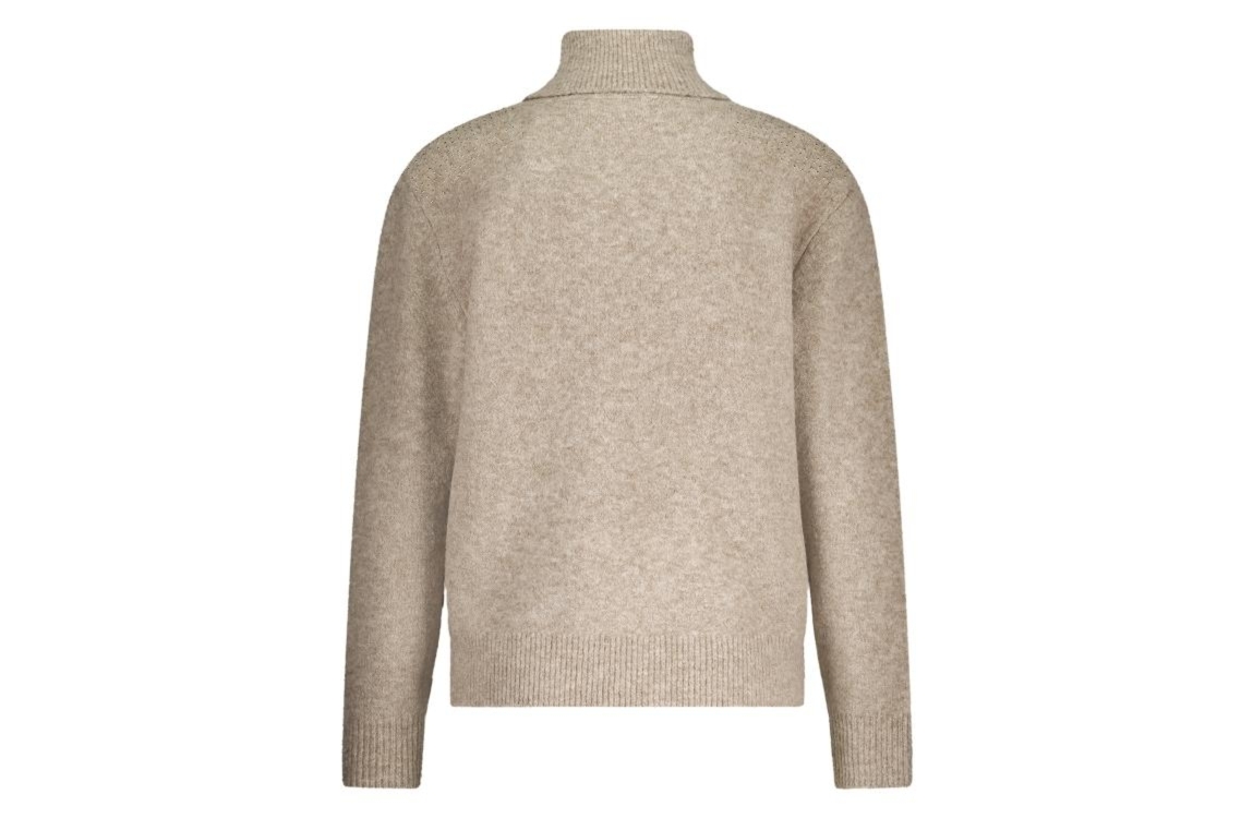 NUKUS Steffie Pullover 49 light fango. Dit rechtvallende model is voorzien van een col en heeft lange mouwen. Deze bruine pullover van Nukus is bewerkt met stud op de schouder en is afgewerkt met ribboorden.