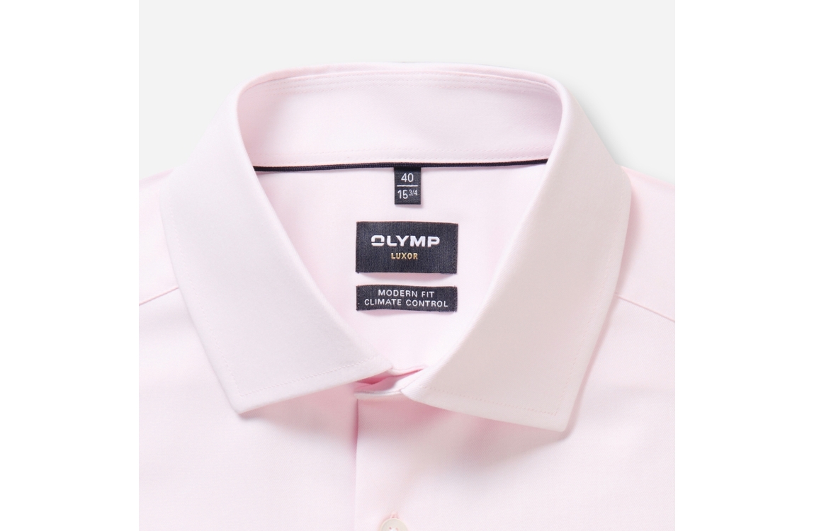 Olymp overhemd Luxor 1230/24. Dit modern fit is voorzien van een kraag en heeft lange mouwen. Deze lichtroze overhemd van Olymp sluit door middel van knopen en is uitgevoerd in een stretch kwaliteit.
