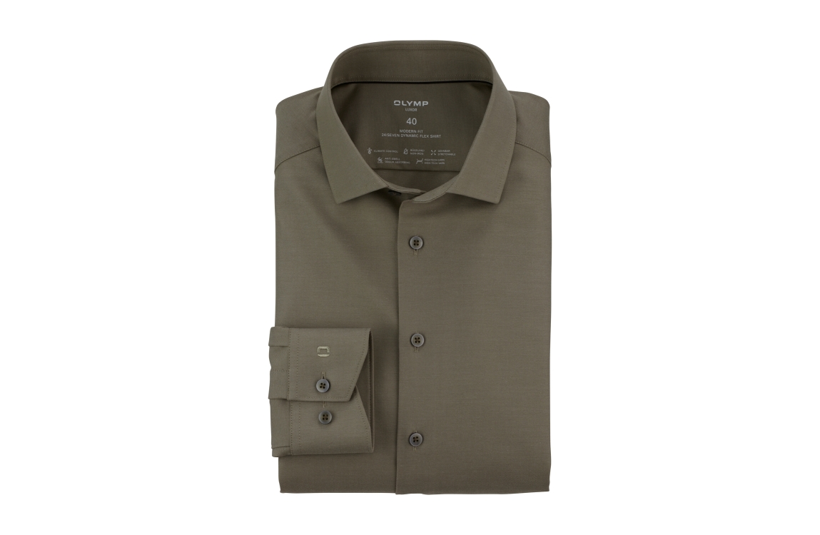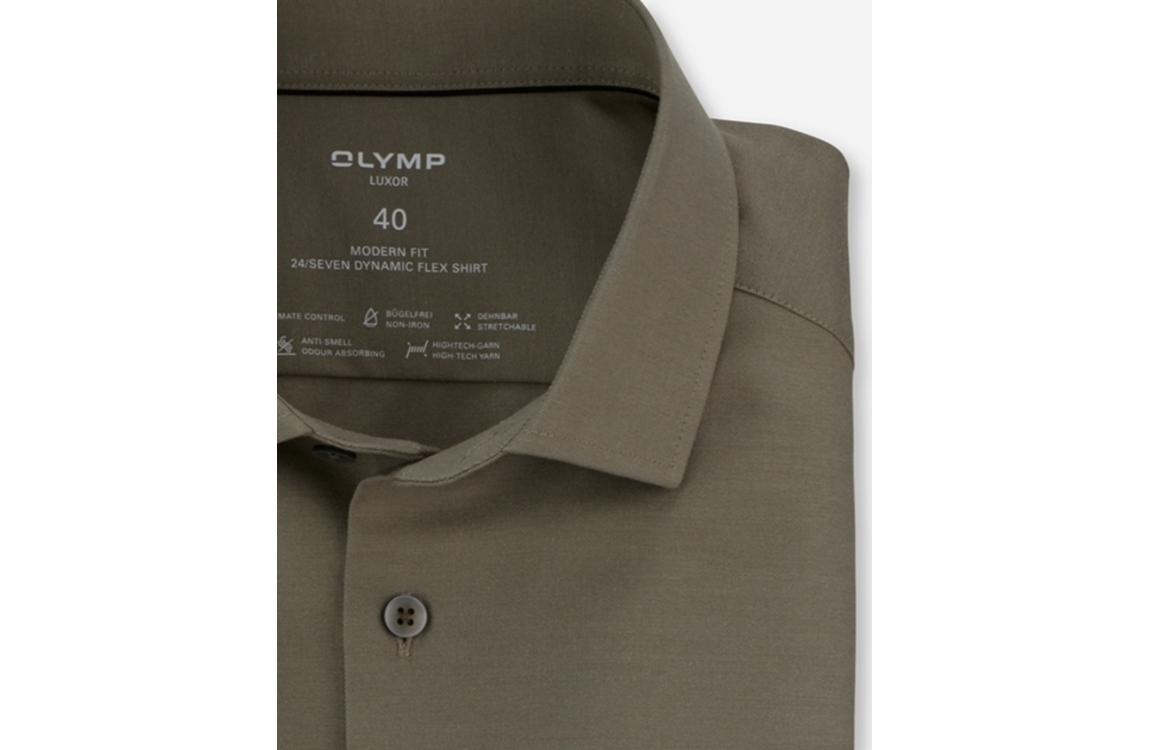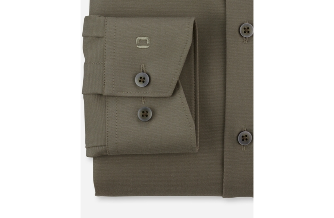 Olymp overhemden 123024-hemden. Dit modern fit model heeft een kraag, lange mouwen en sluit door middel van knopen. Dit groene overhemd van Olymp is gemaakt van een non-iron materiaal.