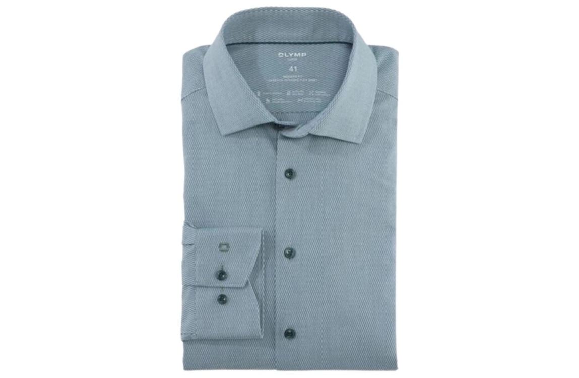 Olymp Luxor overhemd 1243/44/45. Dit modern fit overhemd is voorzien van kraag en lange mouwen. Deze groene overhemd van Olymp Luxor sluit door middel van knopen en heeft een lichte structuur.