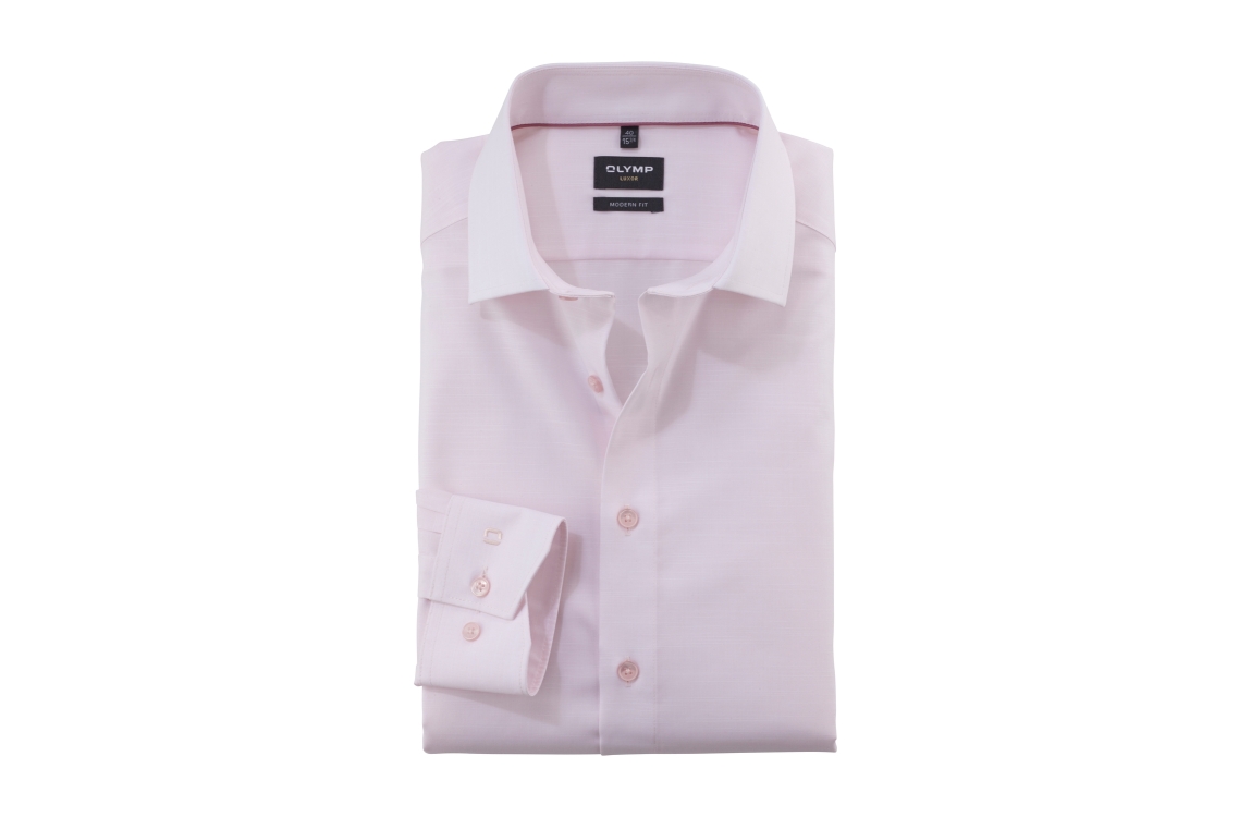 Olymp overhemd Luxor 1244/54. Dit modern fit is voorzien van een kraag en heeft lange mouwen. Deze roze overhemd van Olymp sluit door middel van knopen.