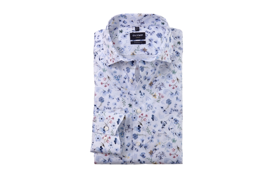 Olymp overhemden 125674-hemden. Dit modern fit model heeft lange mouwen en een kraag en sluit doormiddel van knopen. Dit witte shirt van Olymp is strijkvrij en heeft een bloemen patroon.