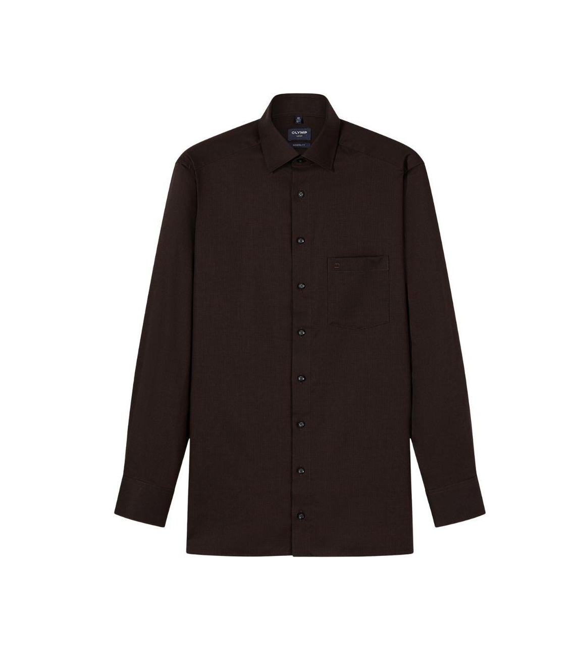 Olymp overhemd Luxor 126084. Dit modern fit is voorzien van een kraag en heeft lange mouwen. Deze bruine overhemd van Olymp sluit door middel van knopen en heeft een borstzak.