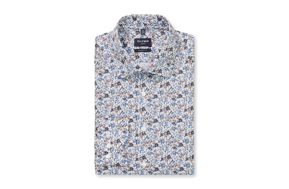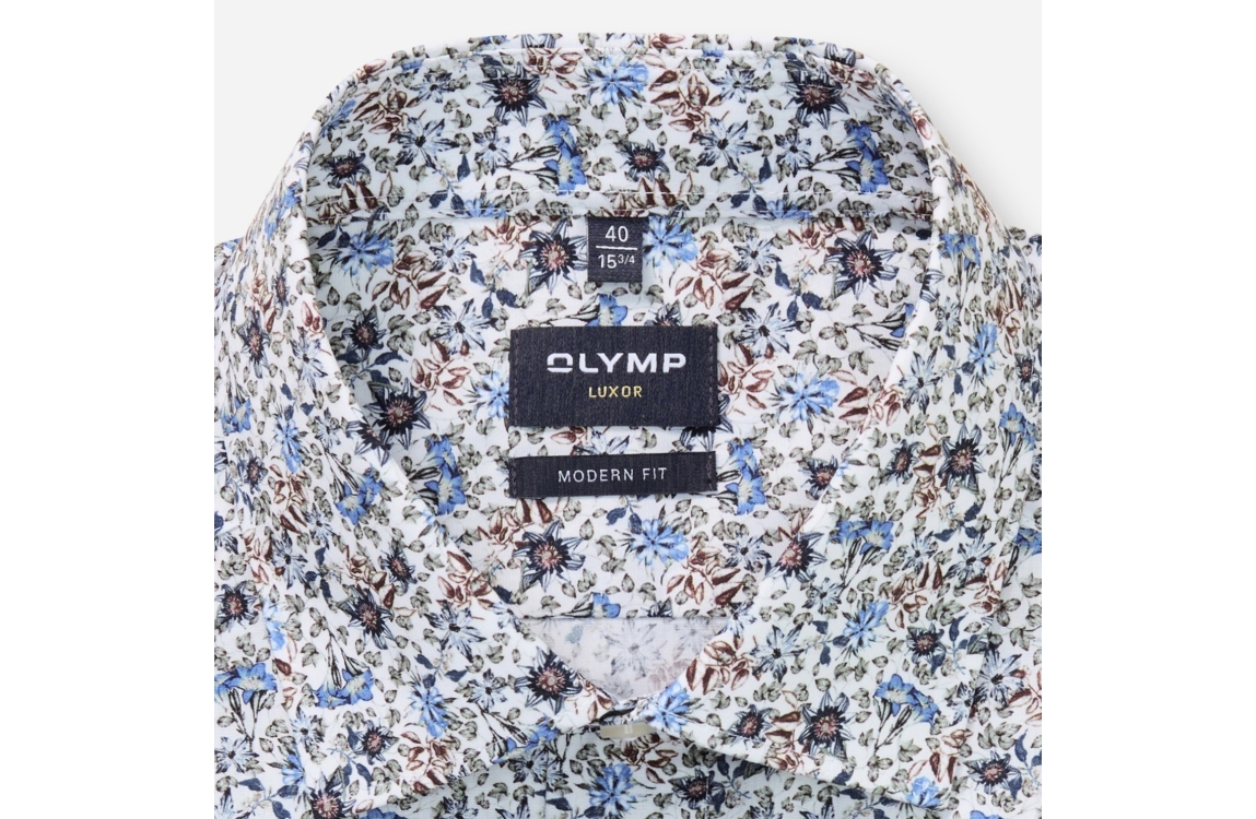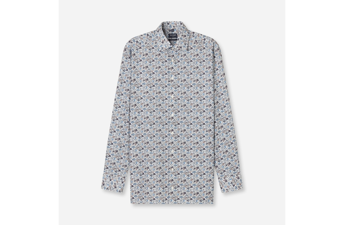 Olymp 126684-Hemden 00. Dit regular fit model heeft een kraag en lange mouwen. Deze witte overhemd van Olymp sluit aan de voorzijde door middel van knopen en is all-over bewerkt met een print in verschillende kleuren.