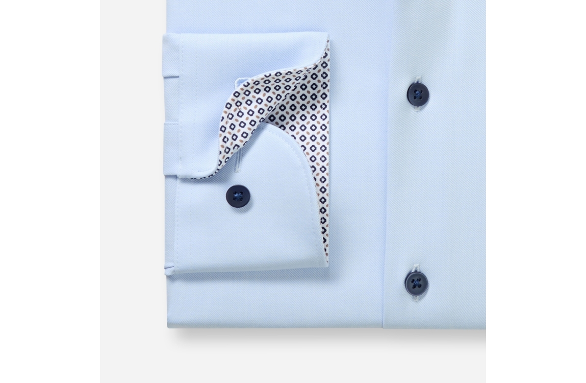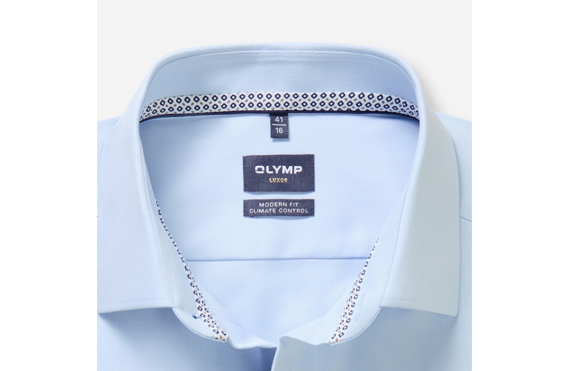 Olymp overhemd Luxor 1316/41. Dit modern fit is voorzien van een kraag en heeft lange mouwen. Deze lichtblauwe overhemd van Olymp sluit door middel van knopen en is uitgevoerd in een stretch kwaliteit.