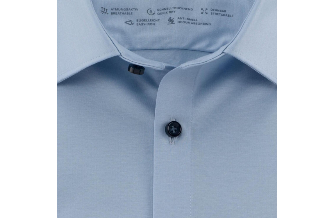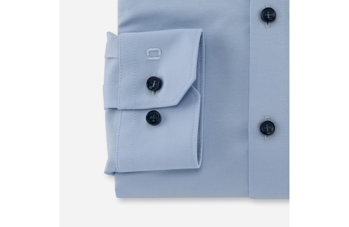 Olymp overhemden 250374. Dit rechtvallende model is voorzien van een kraag en heeft lange mouwen. Deze blauwe overhemd van Olymp sluit door middel van knoopjes. Dit model heeft veel stretch, droogt snel en is makkelijk te strijken.