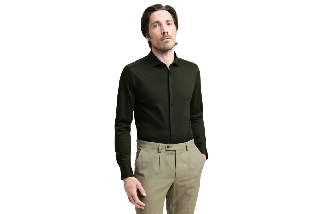 Olymp Signature 850144-Hemden 48. Dit regular fit model heeft een kraag, lange mouwen en sluit door middel van knopen. Dit donkergroene overhemd van Olymp heeft bewegingsvrijheid en ademende eigenschappen.