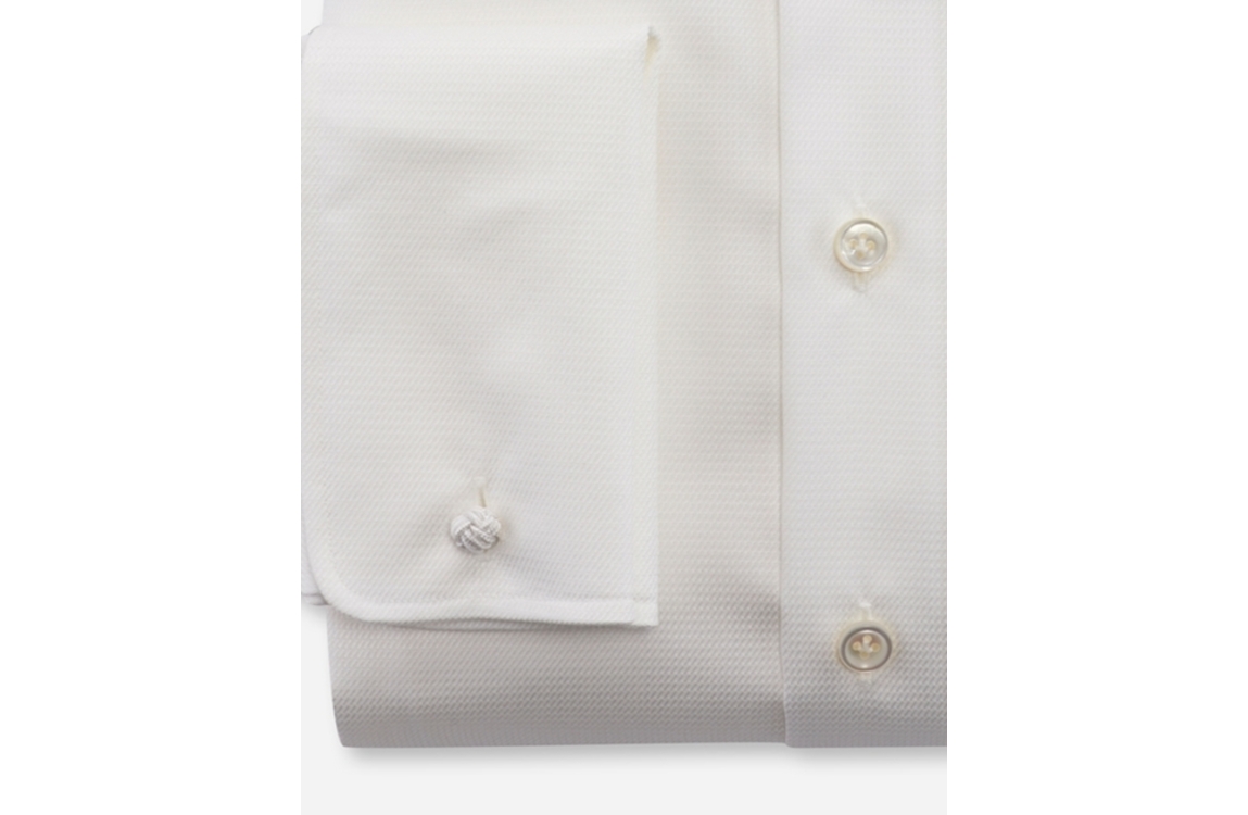 Olymp Signature overhemd. Dit tailord fit model sluit aan de voorzijde met knoopjes, beschikt over een cut away-kraag en heeft lange mouwen. Dit witte overhemd van Olymp is uitgevoerd in een elegante hoogwaardig katoen.