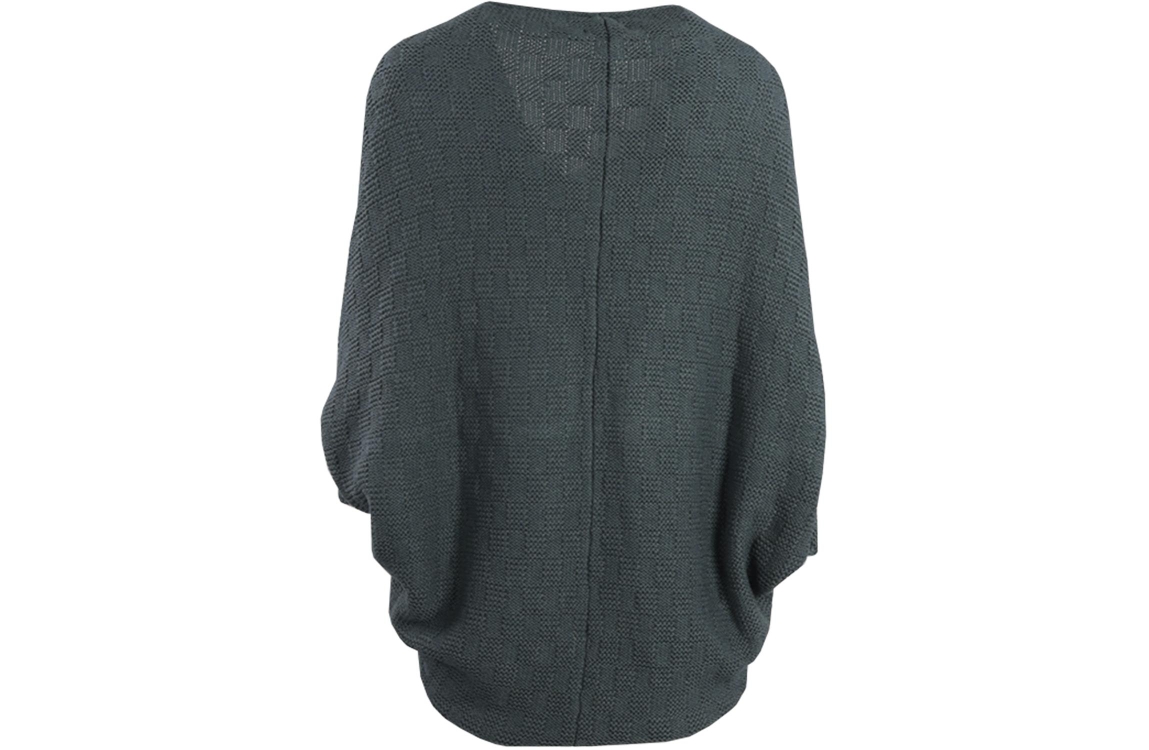 Opus vest 2067111554. Dit openvallend model is voorzien van een ronde hals en driekwart mouwen. Dit groen gebreide vest van Opus loopt rond.