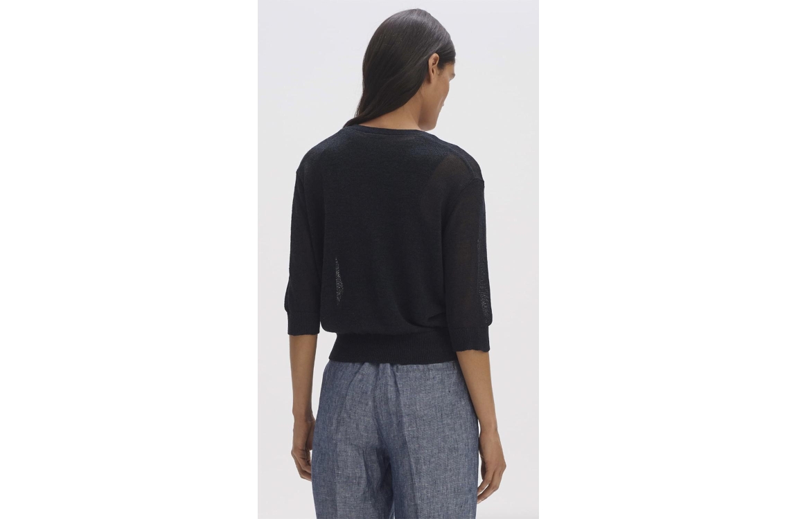 Opus kleding vest Dorifa 1028375761. Dit rechtvallend model is voorzien van een v-hals en heeft driekwart mouwen. Deze blauwe vest van Opus sluit door middel van knopen en is fijngebreid uitgevoerd.