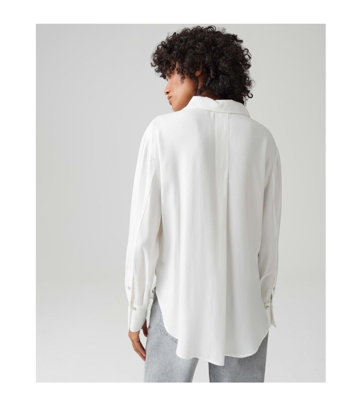 Opus Fahla 1004 Milk. Dit soepelvallende model is voorzien van een klassieke kraag en heeft een lange mouwen. Deze off-white blouse van Opus sluit aan de voorzijde door middel van knopen.