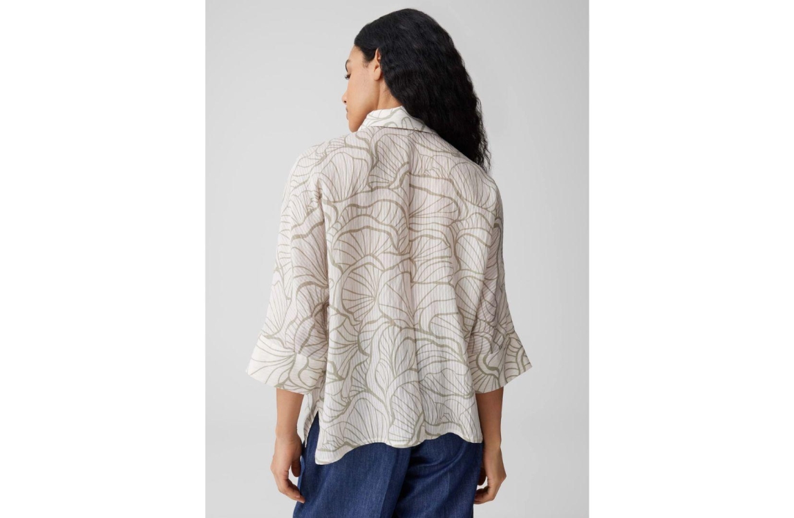 Opus blouse Fashell 10550314082423. Dit rechtvallend model is voorzien van een kraag en heeft driekwart mouwen. Deze witte blouse van Opuys sluit door middel van knopen en is all-over bewerkt met een groene bloemenprint.