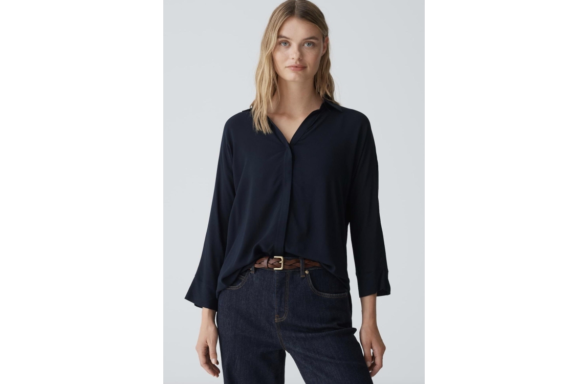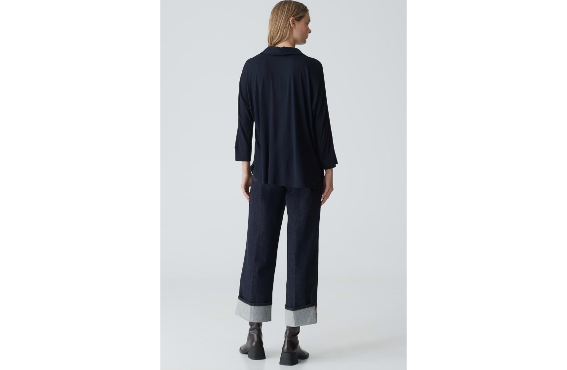 Opus blouse 10314712485 Flavena. Dit flared fit model is voorzien van een kraag, lange mouwen met knopen. Deze zwarte blouse van Opus sluit door middel van knopen.