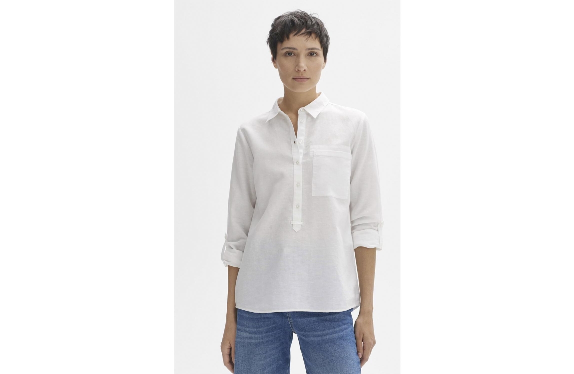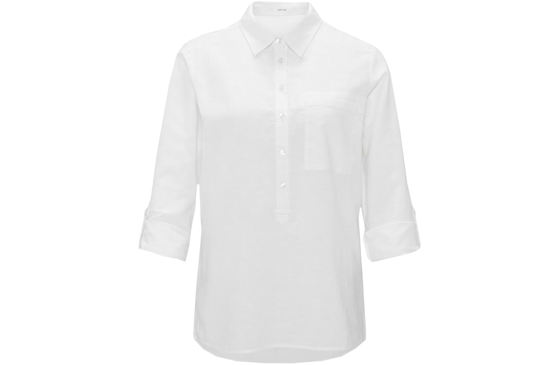 Opus blouse Freppa 1026023438100. Dit soepelvallend model is voorzien van een kraag en heeft lange mouwen met knoop. Deze witte blouse sluit met knopen.