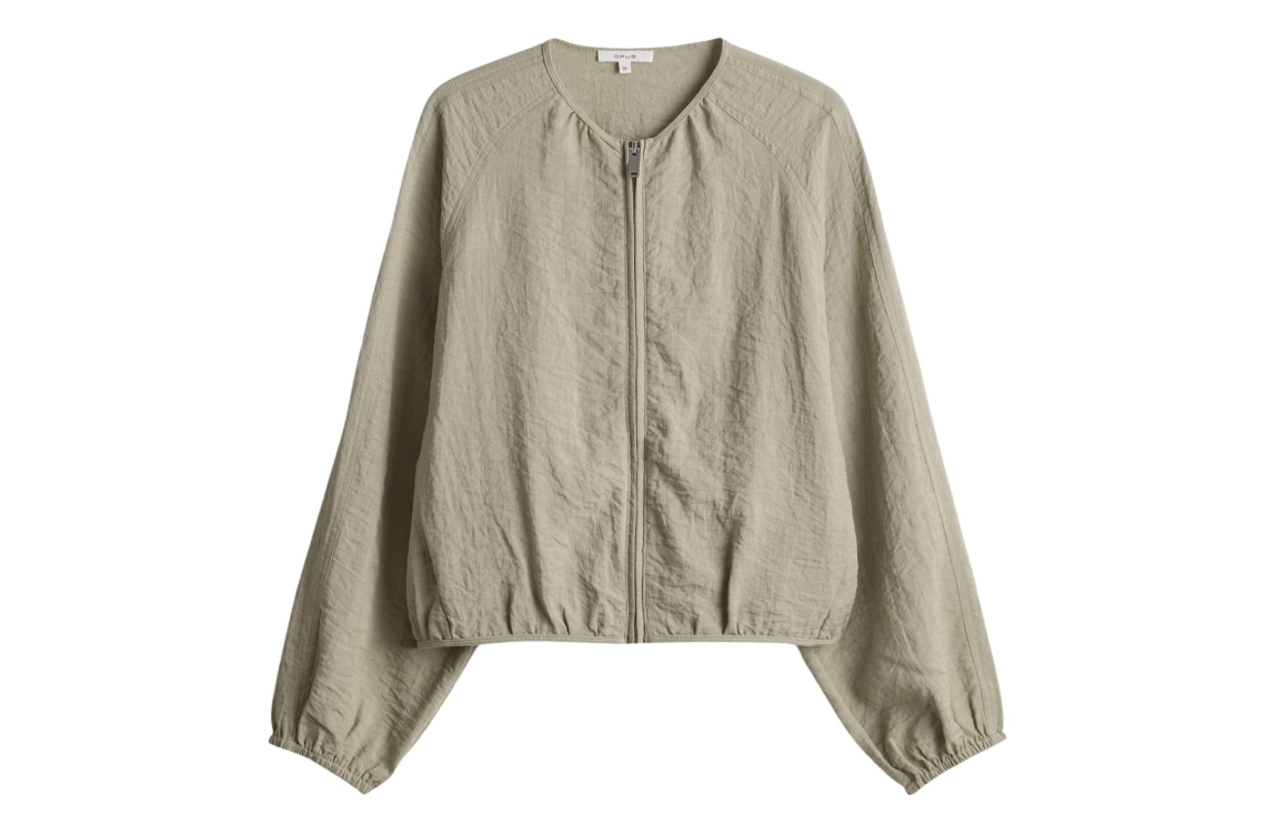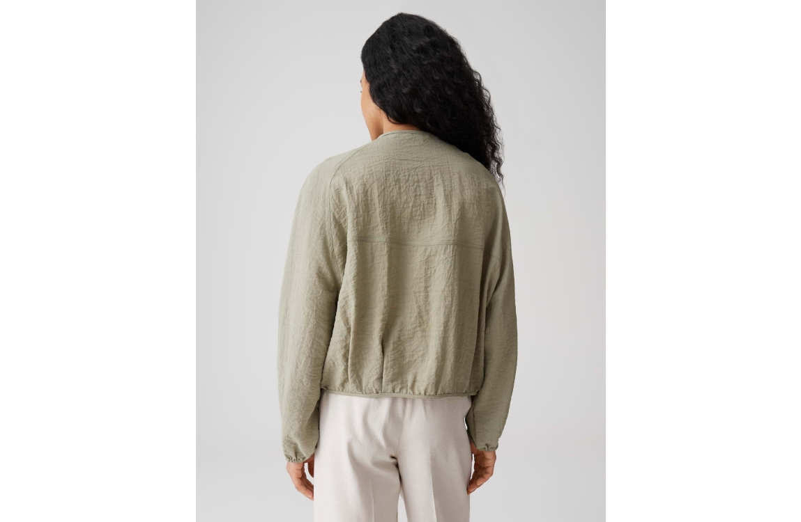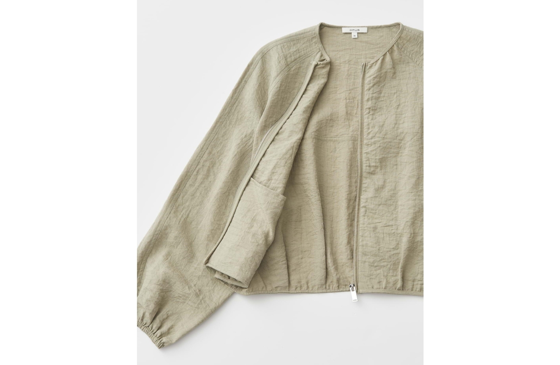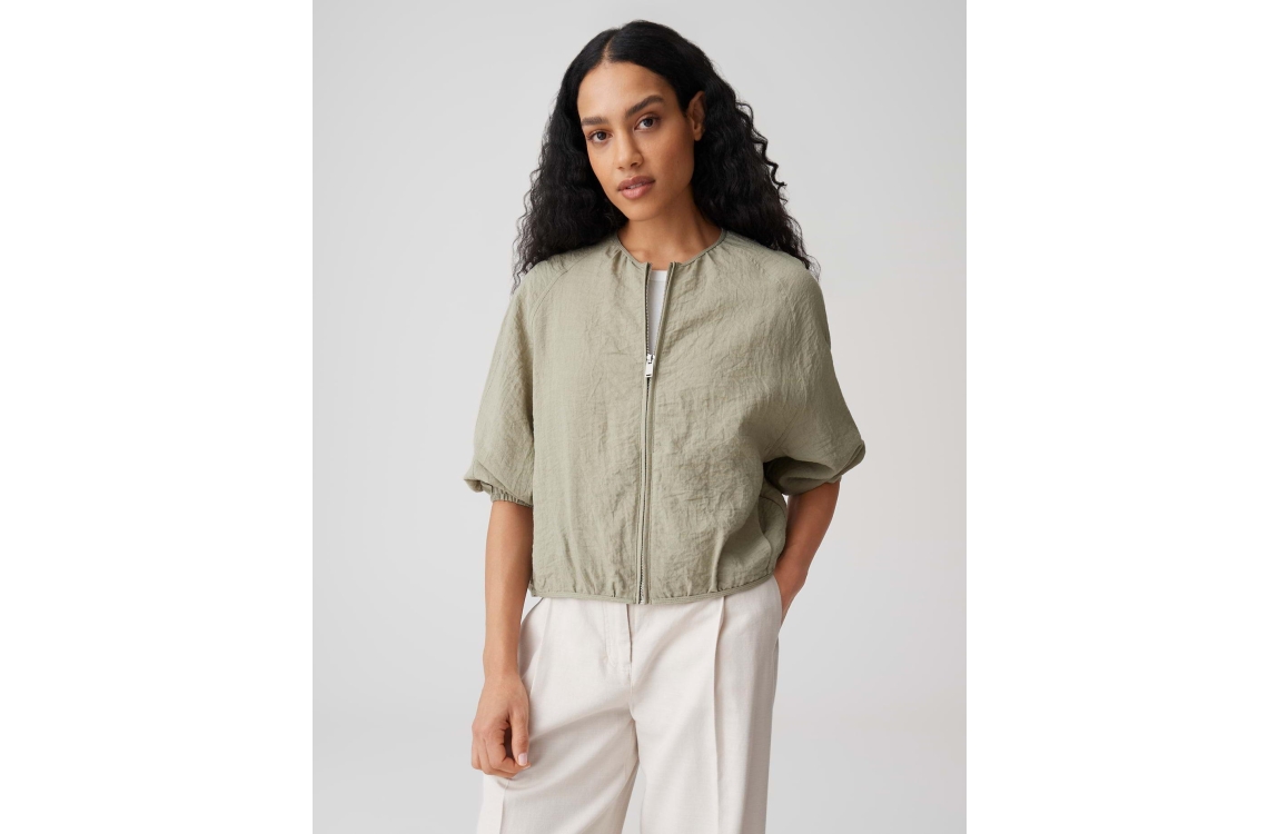 Opus Jarosa jasje 10549014073423. Dit soepelvallend model heeft een ronde hals, lange mouwen en sluit door middel van een rits. Dit licht groene jasje van Opus is voorzien van schuine steekzakken op het voorpand en is bewerkt met elastische boorden aan de onderzijde.