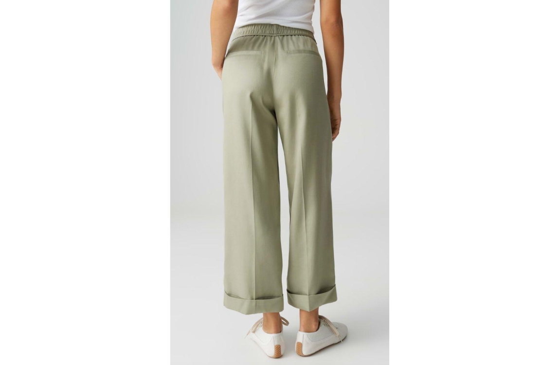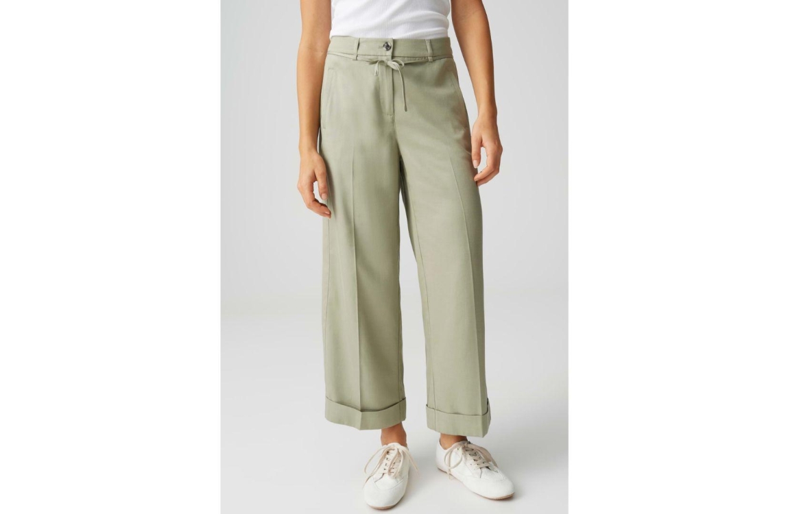 Opus broek Meeri Bloom 10534413973106. Dit wijdvallend relaxed model sluit door middel van een knoop en rits met een afneembaar strikkoord. Deze groene broek van Opus beschikt over twee steekzakken aan de voorzijde en twee paspelzakken aan deachterzijde. Dit model is afgewerkt met een omgeslagen zoom.