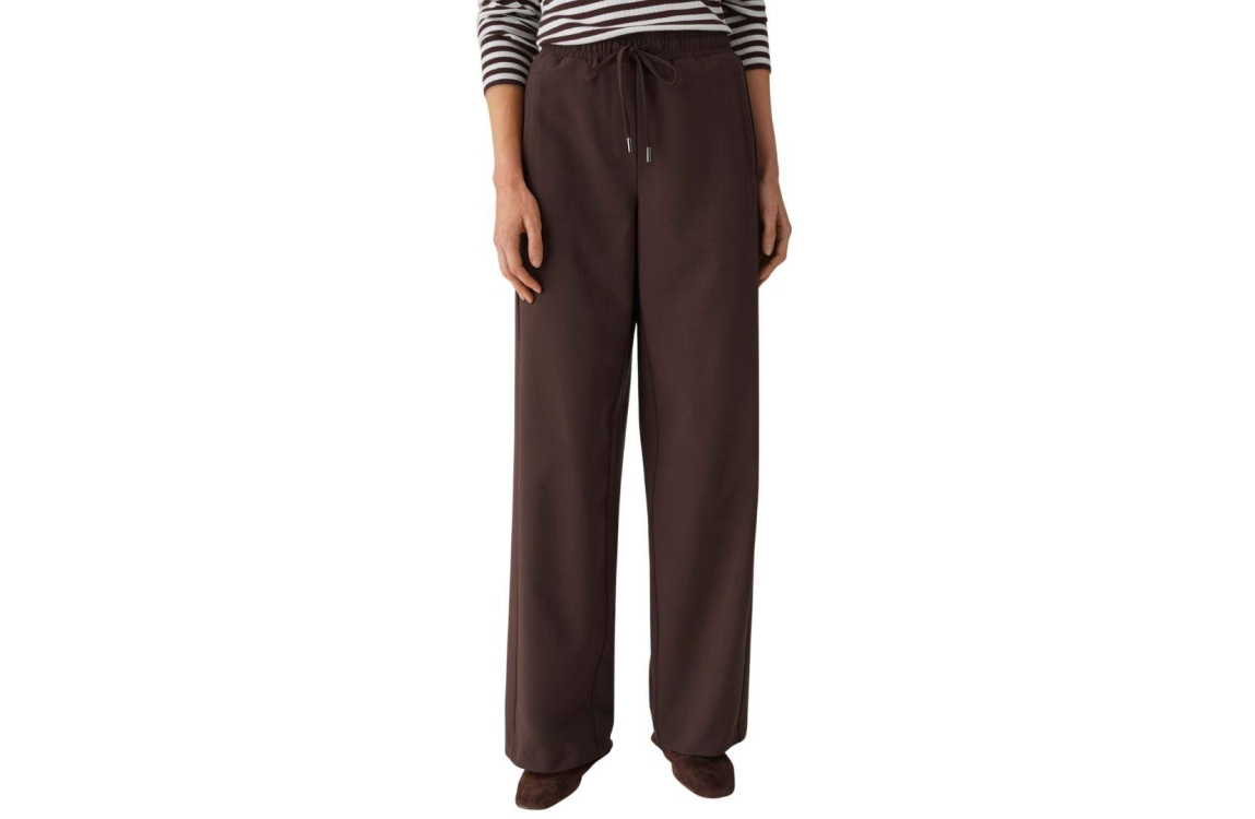 Opus broek Melane Flow 10496814139412. Dit wide fit model sluit door middel van een elastische tailleband met trekkoord en heeft een lange lengte. Deze koffiebruine broek van Opus is voorzien van twee steekzakken aan de voorzijde en twee paspelzakken aan de achterzijde. Het model is uitgevoerd in kreukvrije kwaliteit en geweven stof.