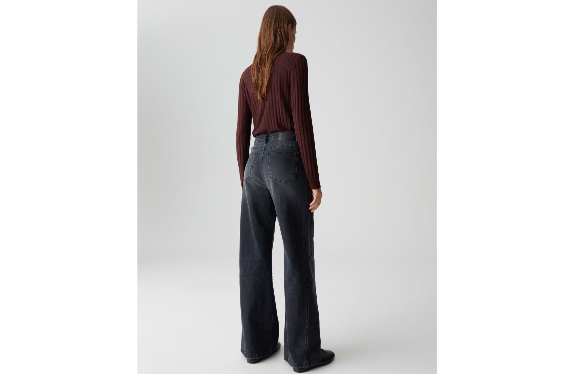 Opus Miva modern 70271 Mid iconic grey. Dit wijdvallend model sluit door middel van een knoop en een rits. Deze grijze jeans van Opus heeft een wijde lange pijp en normale taille. Deze jeans heeft riemlusjes en is uitgevoerd in een 5-pocket model.