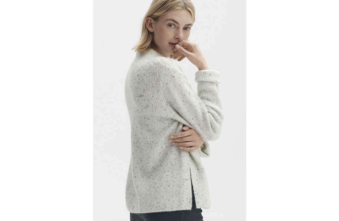 Opus trui Pesolo 10203511615. Dit soepelvallend model is voorzien van een opstaande kraag en heeft lange vleermuismouwen. Deze beige trui van Opus geribd uitgevoerd in een zachte pluizige kwaliteit en heeft spiltten in de zijnaad.