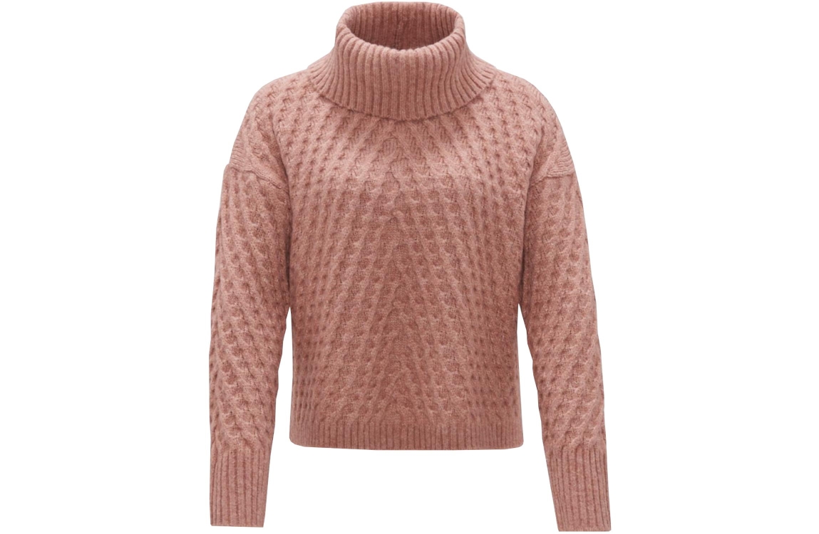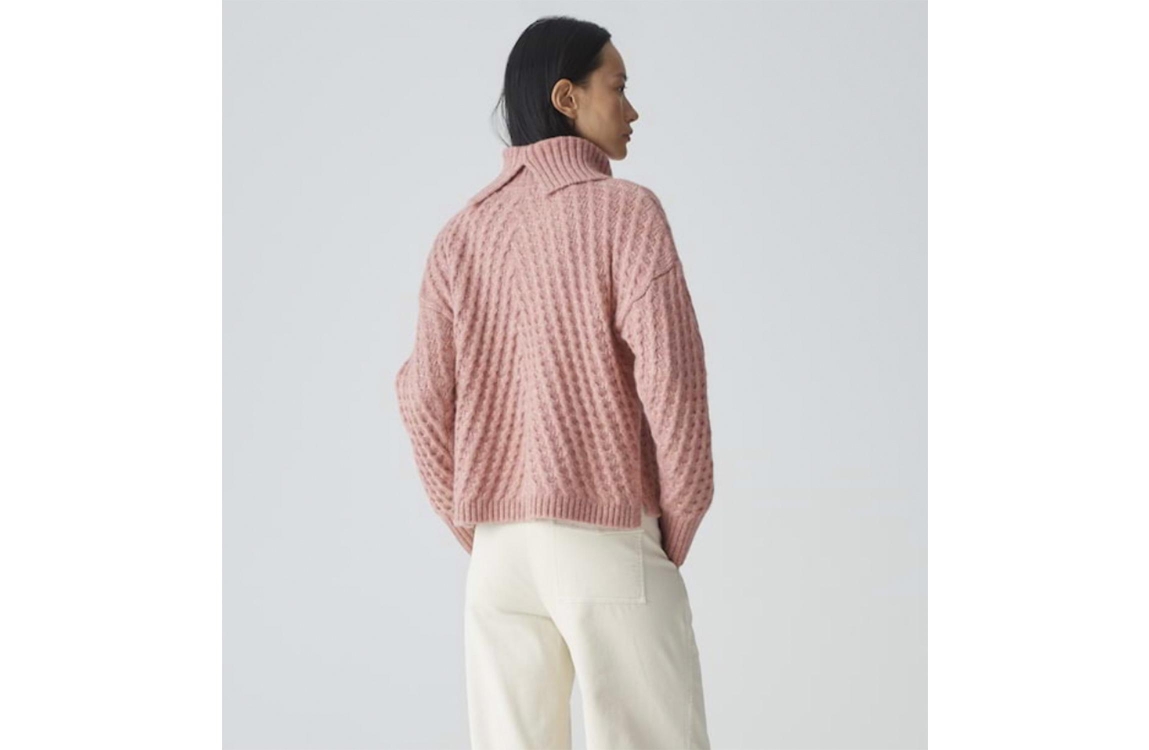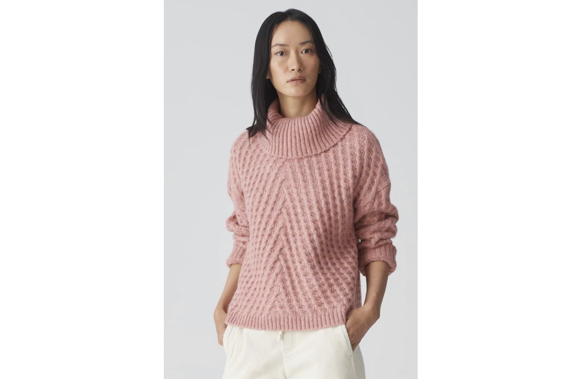 Opus trui Plinea 1033235934100. Dit rechtvallend model is voorzien van een col en heeft lange mouwen. Deze gebreide roze trui van Opus is bewerkt in een gevlochten structuur.