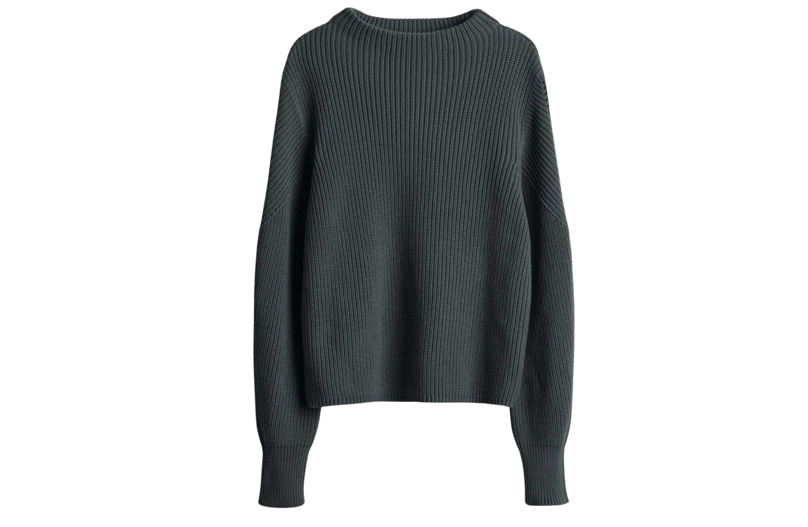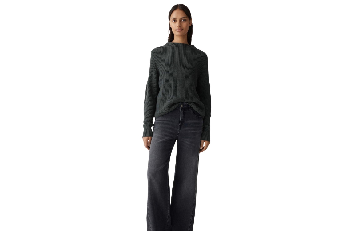 Opus trui 1046134373100. Dit rechtvallende model heeft een trechterhals en lange mouwen. Deze donkergroene trui van Opus is uitgevoerd in een breisel met een geribbelde structuur en heeft een losse pasvorm.