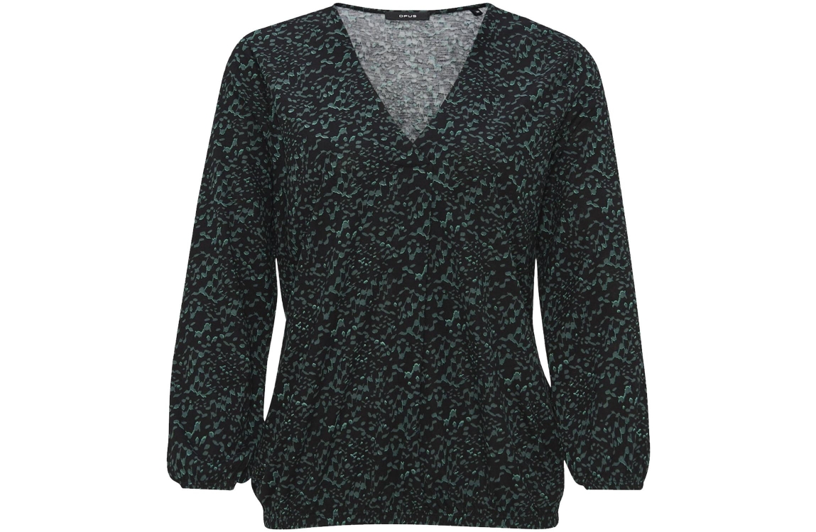 Opus blouse Sannah splendid 10094011634. Dit rechtvallende model is voorzien van een v-hals en heeft driekwart mouwen afgewerkt met een elastiche boord. Deze zwarte blouse van Opus is bewerkt met een all over gebloemd motief en is aan de voorzijde afgewerkt met plooidetails en heeft een elastische boord.