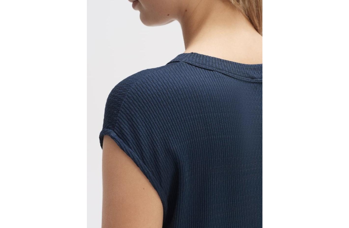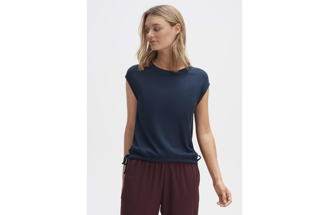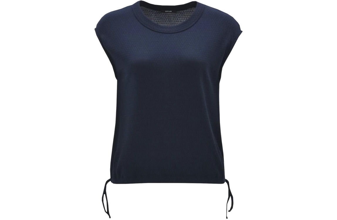 Opus top Sewuki 10288112289. Dit rechtvallend model heeft een ronde hals en gevallen schouders. Deze donkerblauwe top van Opus is voorzien van een elastische trekkoord aan de onderzijde.