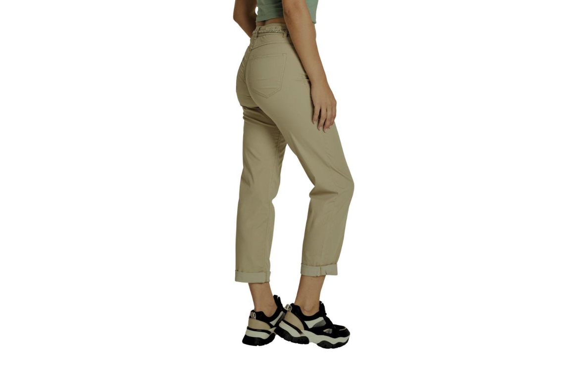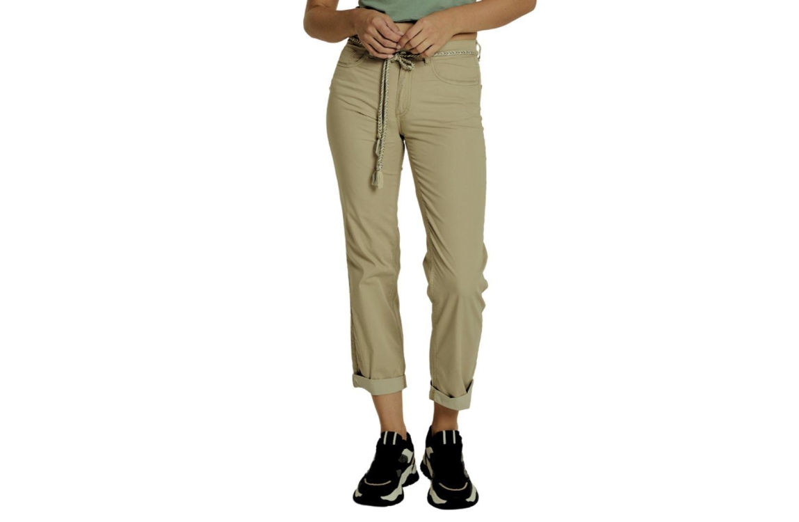 Parami broek Bobby SS252-207091. Dit wijdvallende model sluit door middel van een knoop en een rits. Deze olijf groene broek van Parami is voorzien van riemlusjes, 5-pocket zakken en een sierkoord.