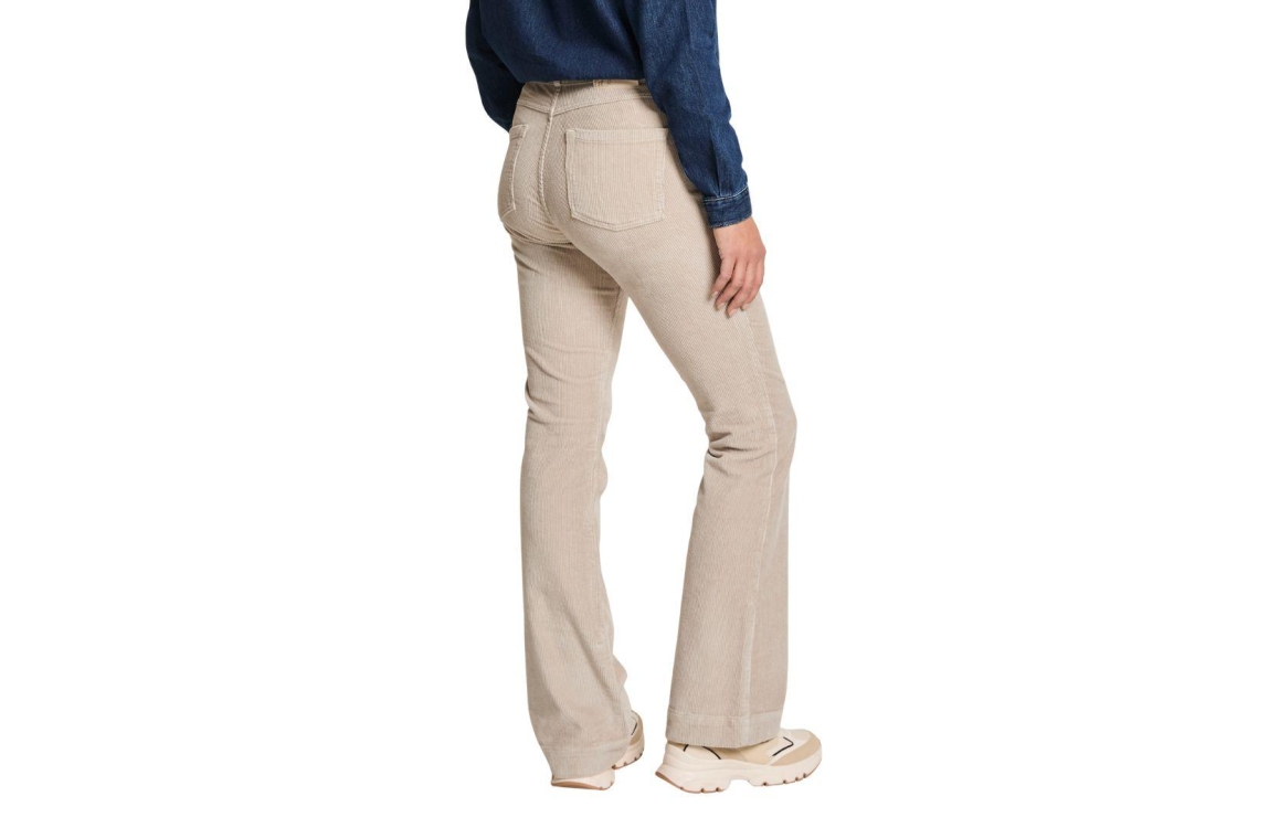 Para Mi broek Jade FW251.104070. Dit flared fit model sluit door middel van een knoop en ritsaansluiting en heeft ceintuurlussen. Deze grijze Para Mi broek is uitgevoerd is corderoy materiaal. Dit model beschikt over twee steekzakken aan de voor- en achterzijde.