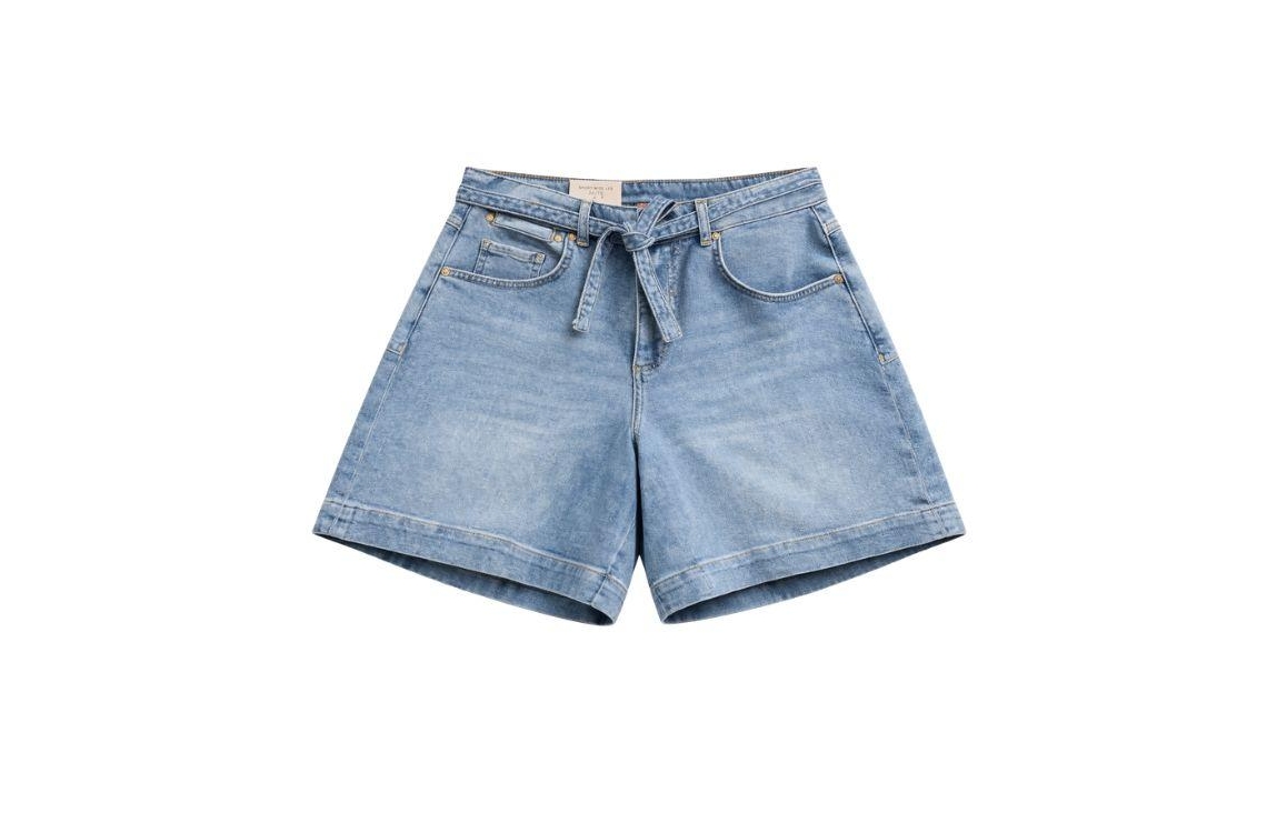 Para Mi short Mira SS262.266301-D125. Dit wide leg model sluit door middel van een knoop, rits en een afneembare strikkoord. Deze denim short van Para Mi is uitgevoerd in een 5-pocket model.