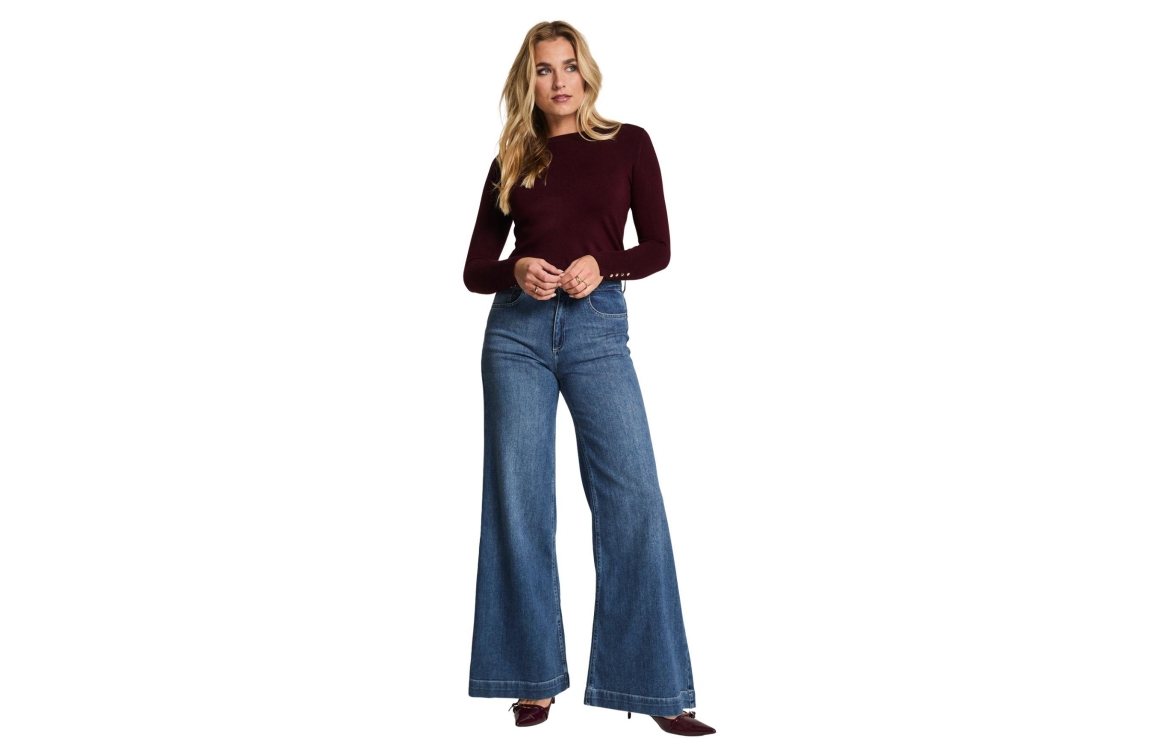 Para Mi jeans Scotty FW251.212366-D64. Dit wide leg model sluit door middel van een knoop en rits afgewerkt met ceintuurlussen. Deze high waist jeans van Para Mi is uitgevoerd in een 5-pocket model.