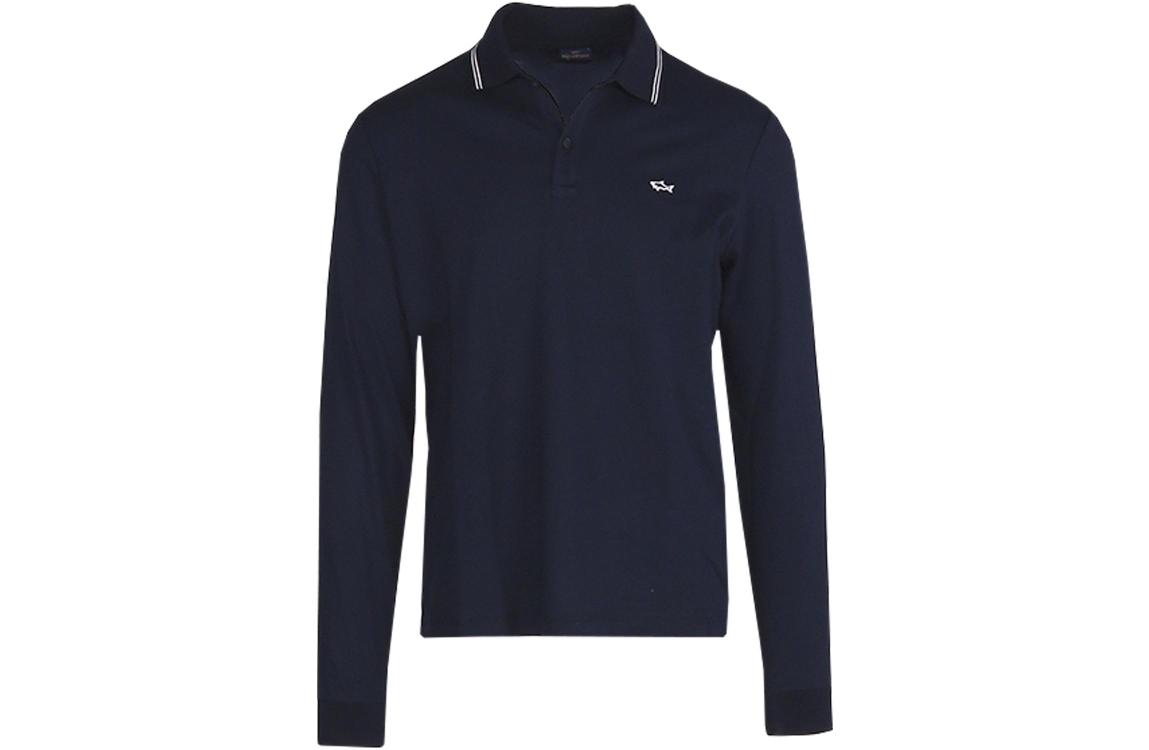 Paul & Shark polo 14311717. Dit rechtvallend model heeft een kraag en lange mouwen. Deze donkerblauwe polo van Paul & Shark sluit aan de bovenzijde door middel van knopen en is gedetailleerd met het merkembleem op de linkerborst.