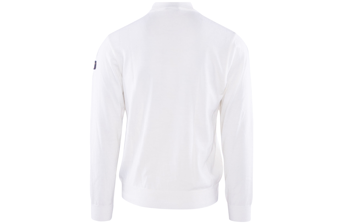 Paul&Shark pullover COP1042. Dit rechtvallende model is voorzien van een col en heeft lange mouwen. Dit witte model is afgewerkt met ribgebreide boorden en is afgewerkt met een merkembleem op de linkermouw.