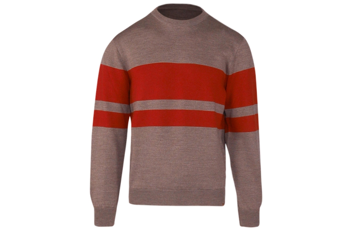 Paul & Shark pullover tag soft cool wool crew . Dit rechtvallende model is voorzien van een ronde hals en lange mouwen. Deze licht bruine pullover van Paul & Shark is afgewerkt met ribgebreide boorden en 2 grote brede rode strepen.
