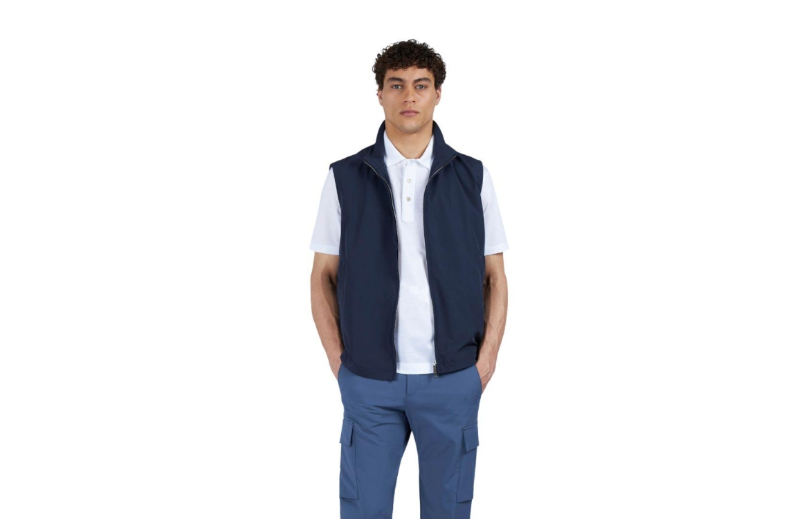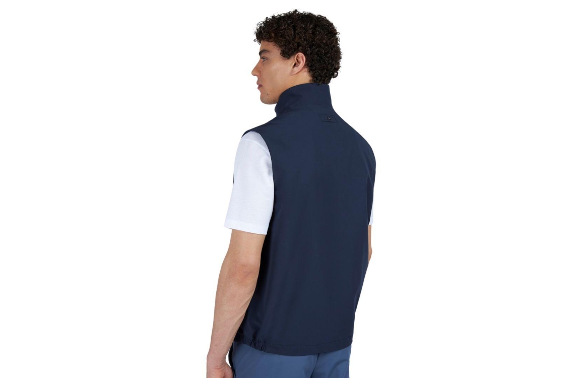 Paul & Shark bodywarmer 25412001. Dit rechtvallend model is voorzien van een opstaande kraag en is mouwloos. Deze blauwe bodywarmer van Paul & Shark sluit door middel van een rits en beschikt over ritszakken.