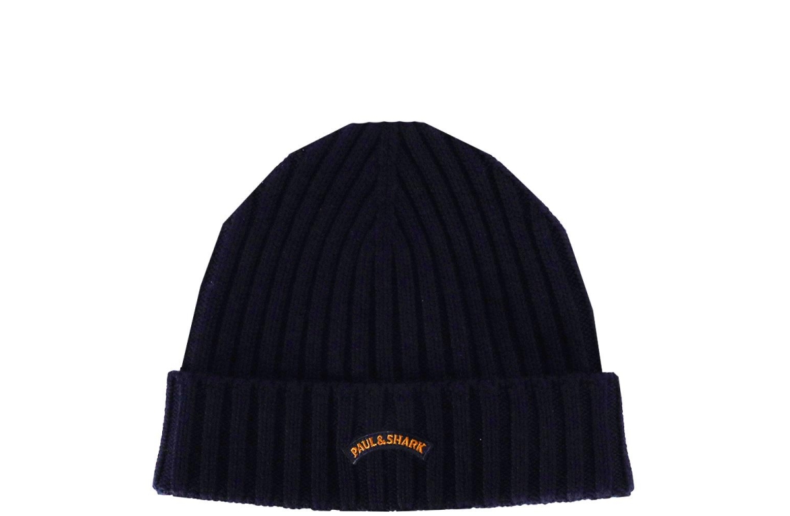 Paul & Shark muts Beanie 14317150. Deze donkerblauw gebreide muts van Paul & Shark heeft een merk embleem aan de voorzijde.