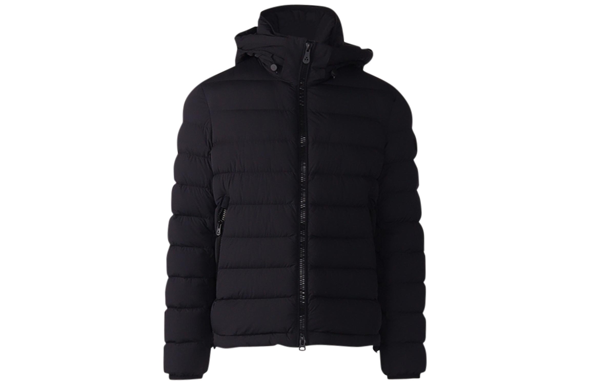 Peuterey Boggs sport jacket. Dit aangesloten heeft een ronde hals en lange mouwen. Deze zwarte jas van Peuterey sluit door middel van een twee-weg rits en is afgewerkt met twee schuine steekzakken met rits. Dit gewatteerde model is voorzien van een binnenzak.