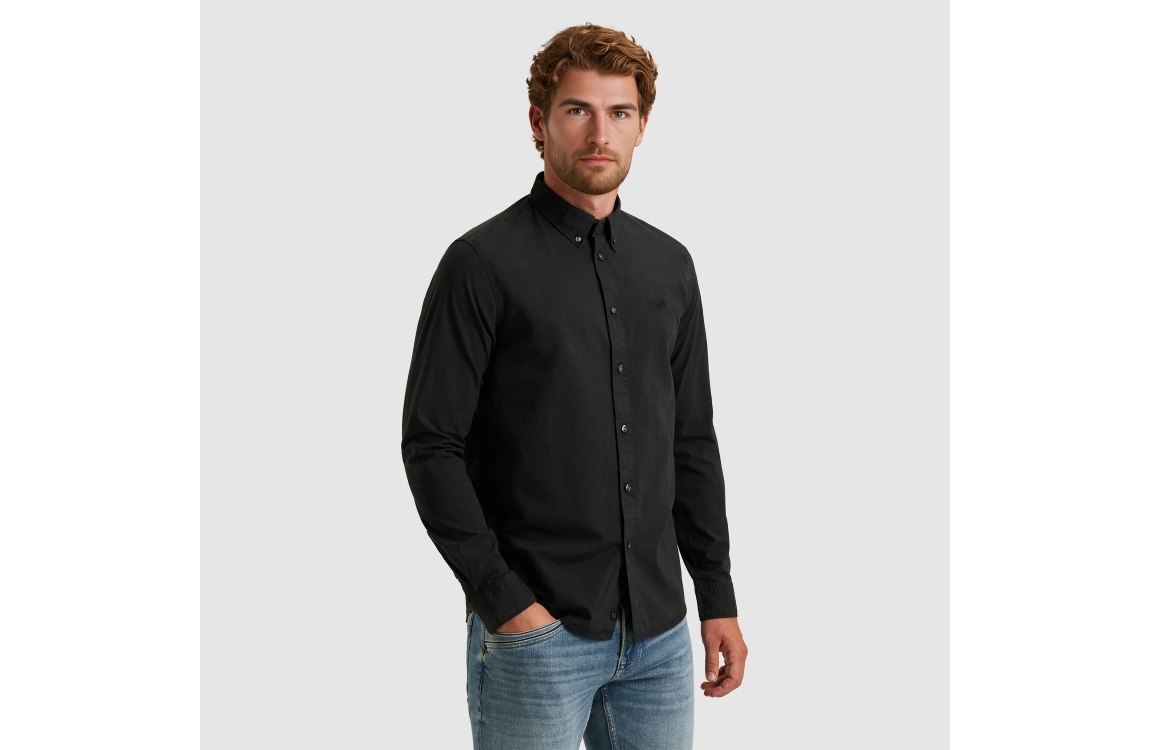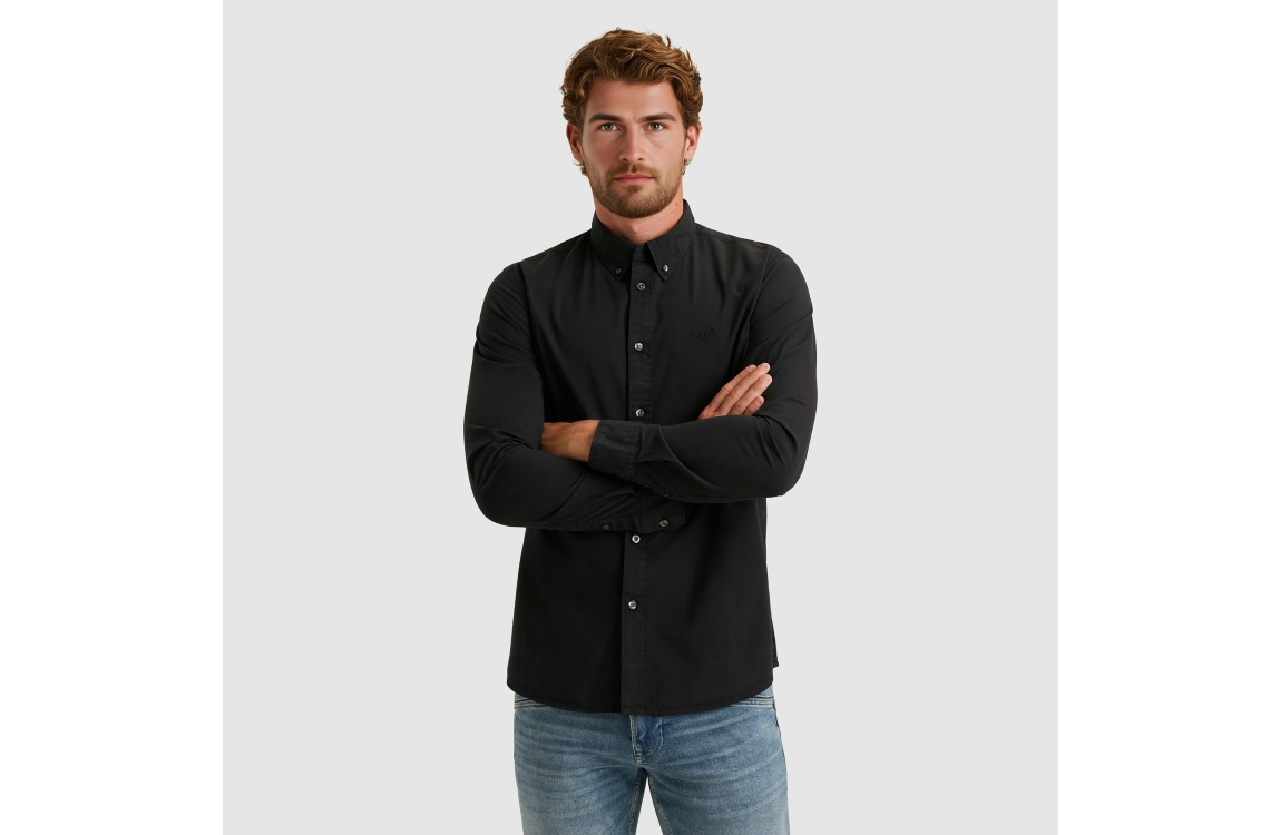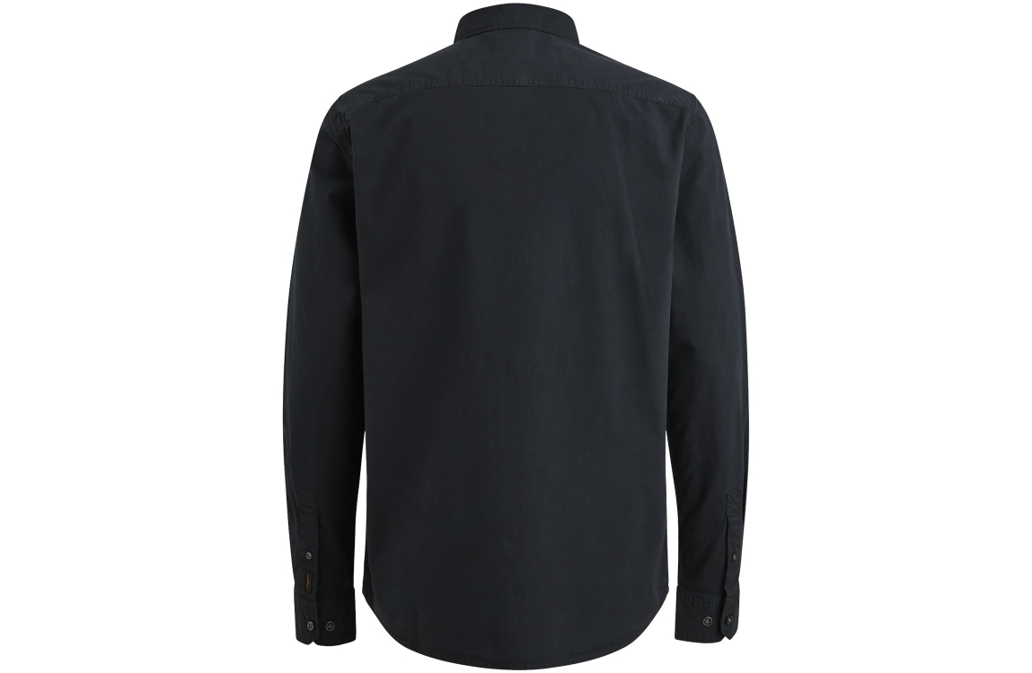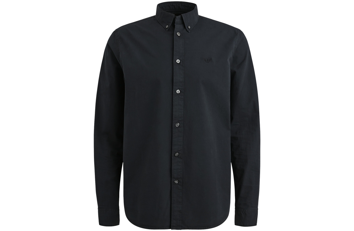PME Legend overhemd PSI000044. Dit regular fit model heeft een kraag en lange mouwen. Dit donker blauwe overhemd van PME Legend sluit aan de voorzijde door middel van knopen en is bewerkt met het merkembleem op de linkerborst.
