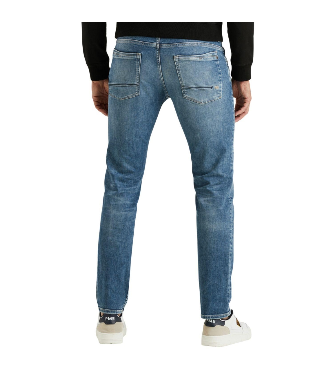 PME Legend broek PTR180-UFB. Dit regular fit model sluit door middel van een knoop- en ritssluiting en is voorzien van ceintuurlussen. Deze denim broek van PME Legend is voorzien van vijf steekzakken, met twee steekzakken aan de voor- en achterzijde en beschikt over een muntenzakje.