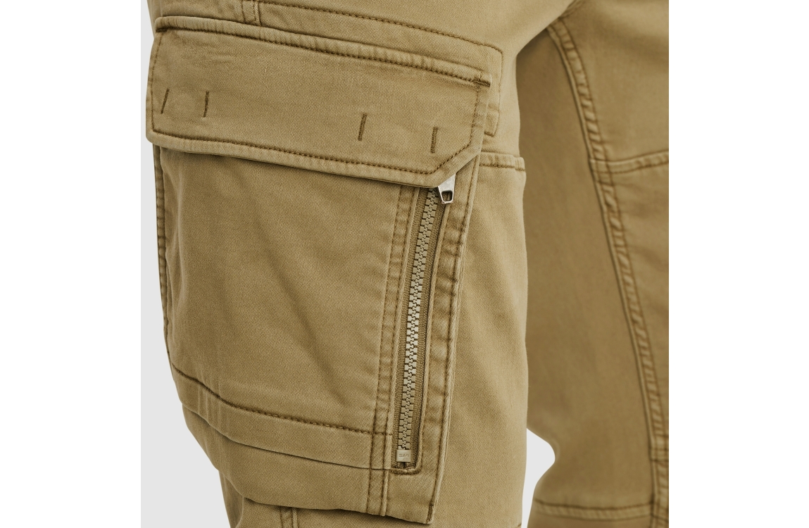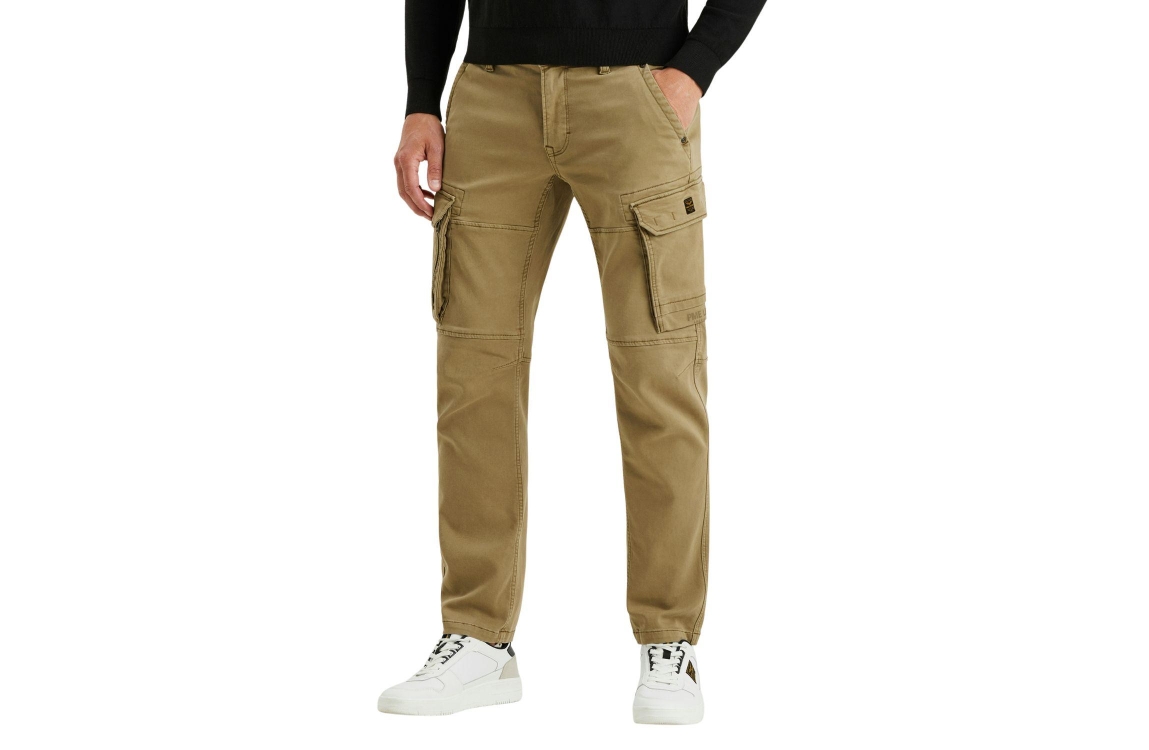 PME Legend cargo PTR2502602. Dit rechtvallend model sluit door middel van een knoop en een rits. Deze beige cargo van PME Legend heeft meerdere kleppen op de broek zitten en maakt gebruik van steekzakken op de voorzijde en beschikt over een koort.