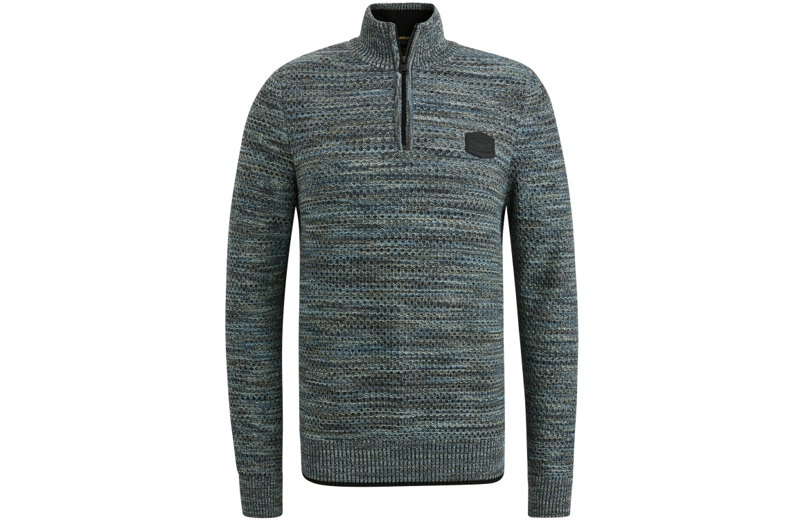 Pme Legend pullover PKW2411331. Dit regular fit model heeft lange mouwen en is doormiddel van een half rits te sluiten. Deze blauw/grijs/bruine zip-pullover van Pme Legend is afgewerkt met een strepen patroon en logo op de borst.