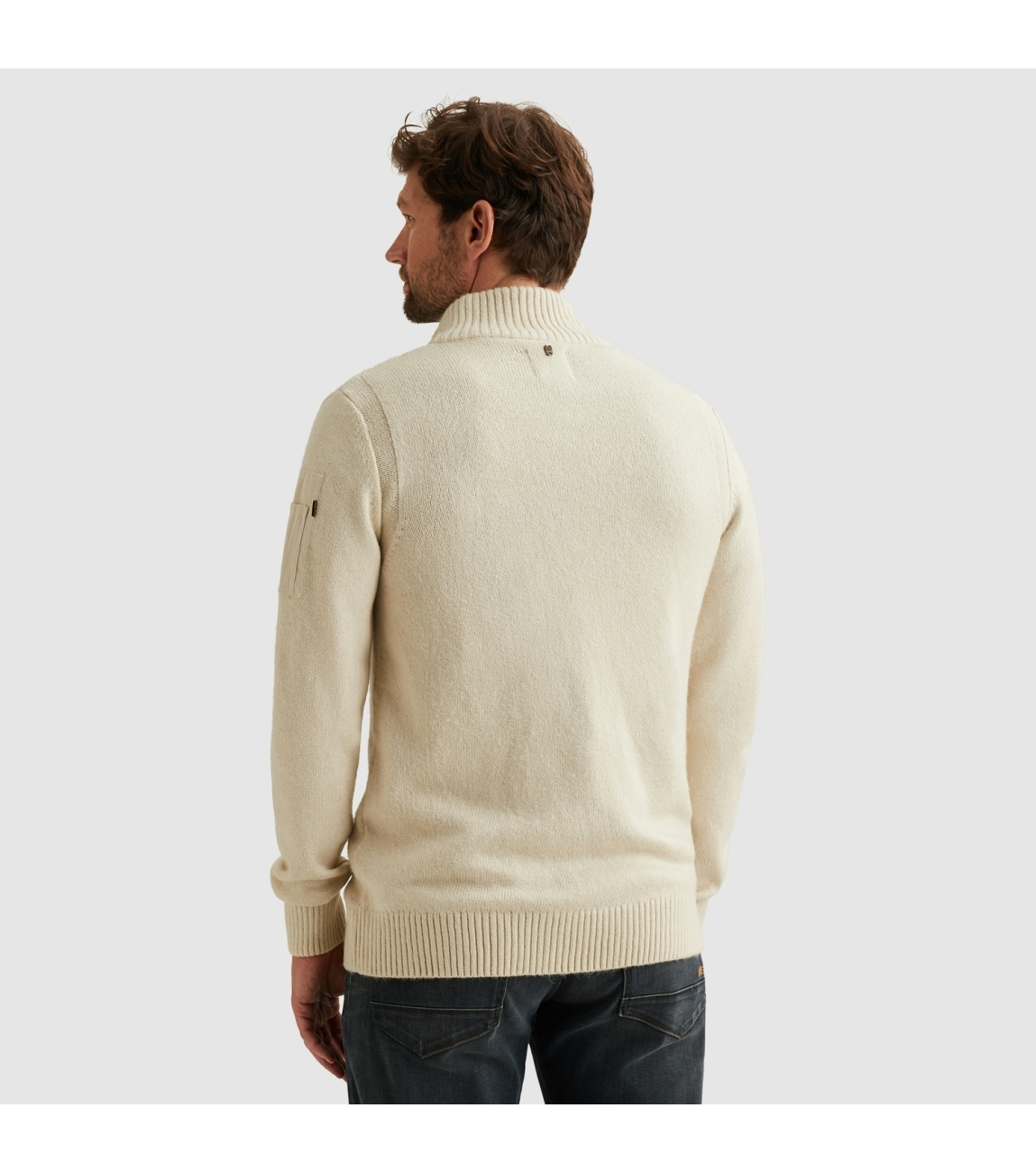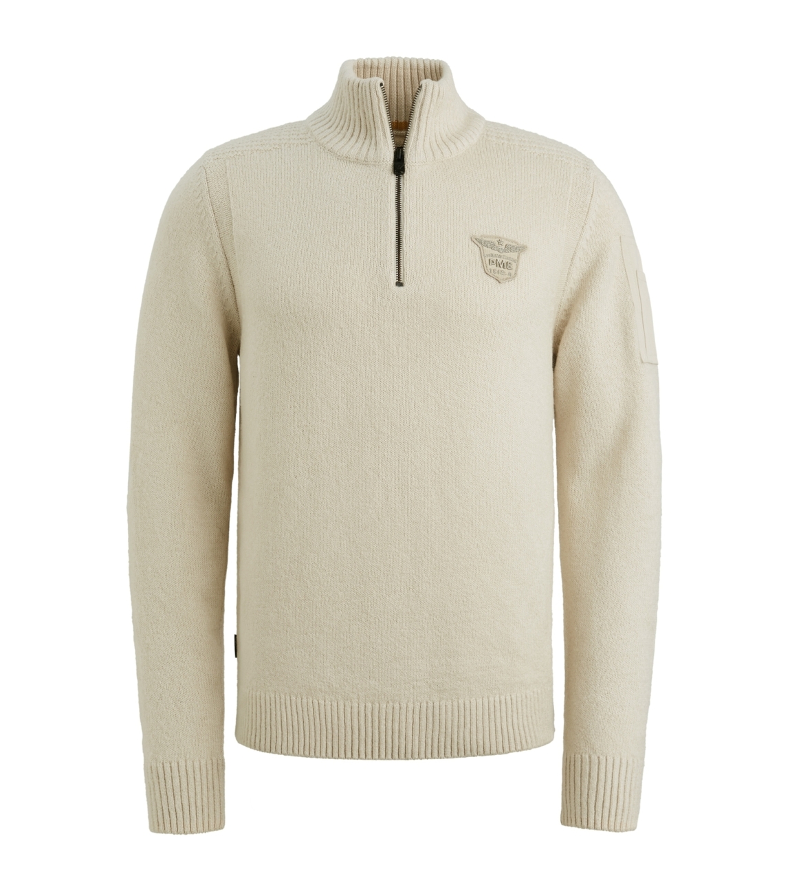 PME Legend pullover PKW2510314. Dit rechtvallend model is voorzien van een col met rits en heeft lange mouwen. Deze beige pullover van PME Legend is bewerkt met het logo op de borst.