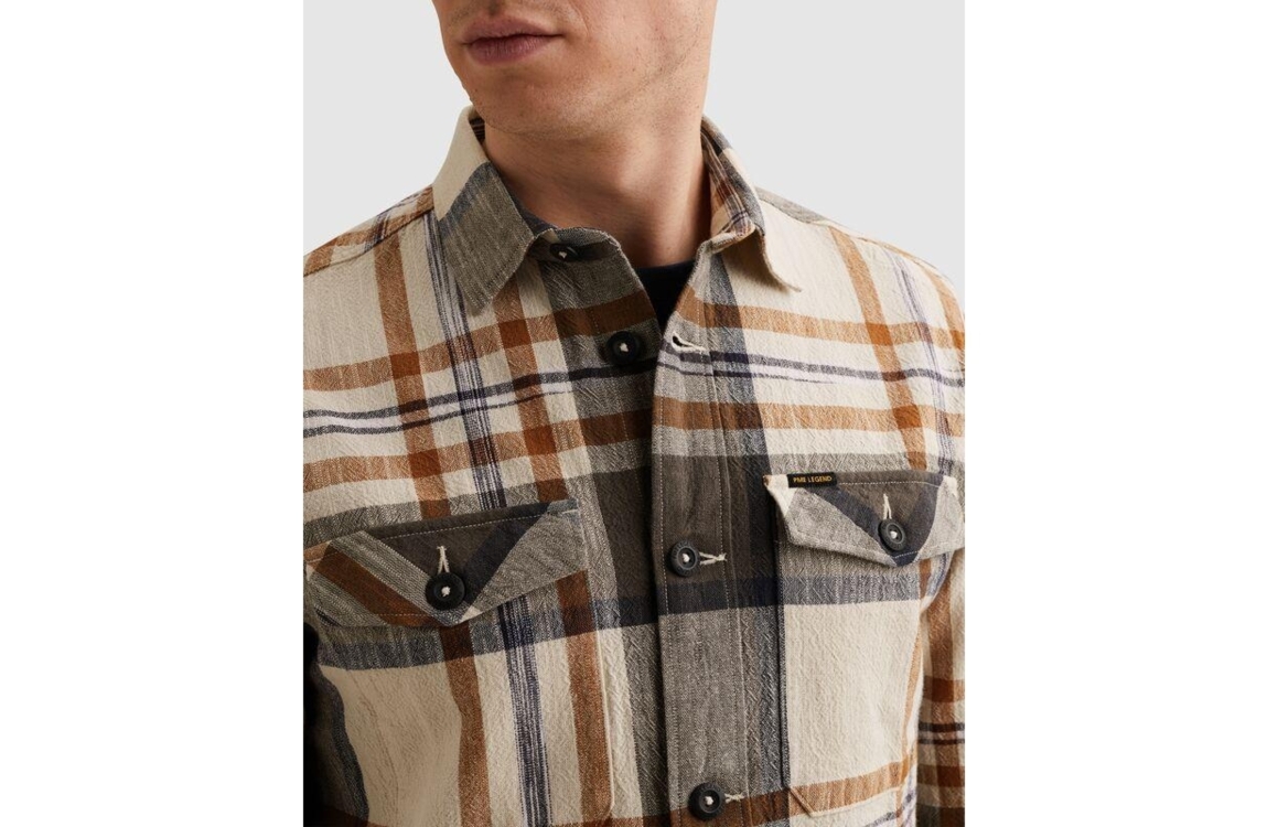 PME Legend overshirt PSI2602218. Dit regular fit model heeft een kraag, lange mouwen en sluit door middel van knopen. Dit geruite overshirt van PME Legend is voorzien van klepzakken op het voorpand