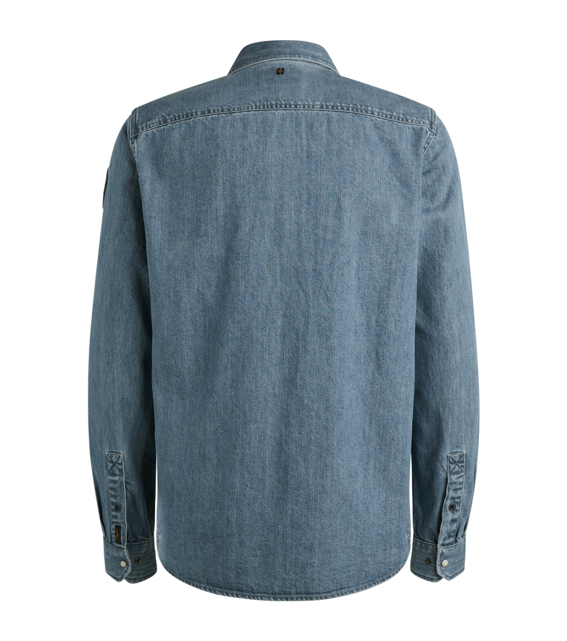 PME Legend overhemd PSI2511248. Dit rechtvallend model is voorzien van een kraag en heeft lange mouwen. Deze denim overhemd van PME Legend sluit door middel van knopen en is afgewerkt met twee borstzakken.