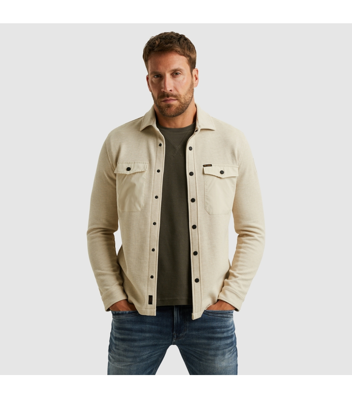 PME Legend overhemd PSI2511246 7013. Dit rechtvallende model heeft een kraag en lange mouwen. Deze off-white overhemd van PME Legend sluit aan de voorzijde door middel van knopen en is voorzien van twee borstzakken. Het model is all-over bewerkt in een wafelstructuur.